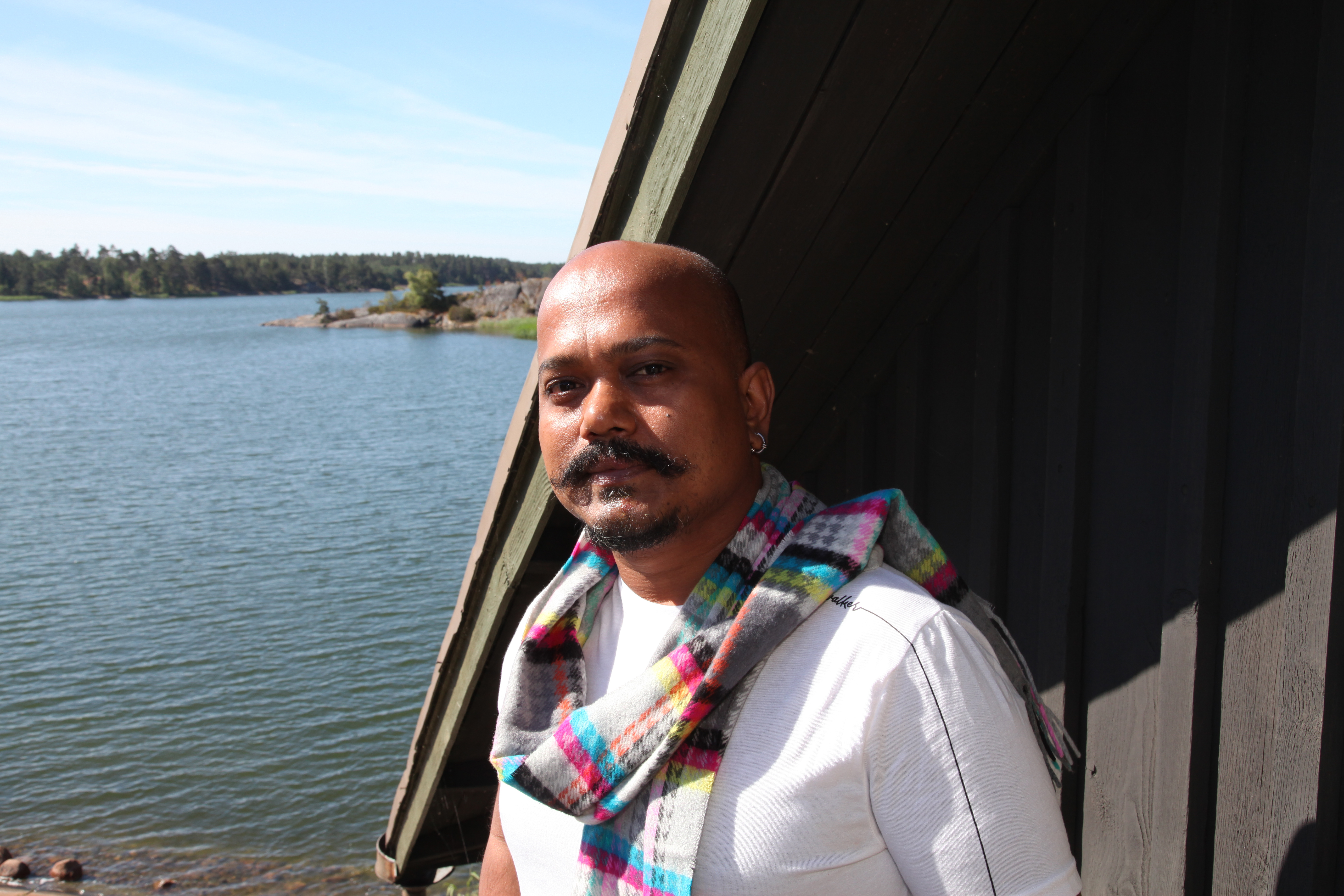 Indisk konstnär visar bilder på Föglö