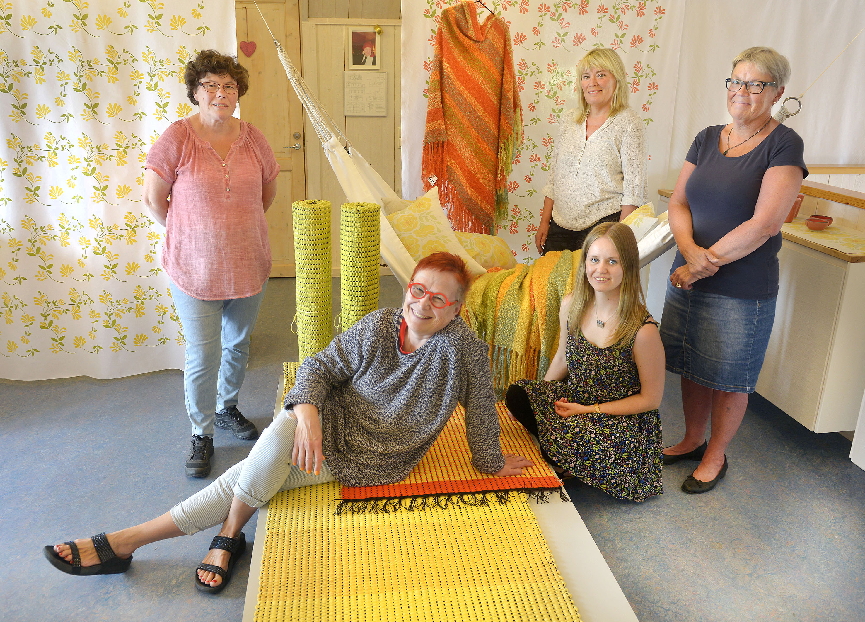 I galleriet visar delägarna och anställda sina alster i form av textiltryck, keramik, vävarbeten och smide.