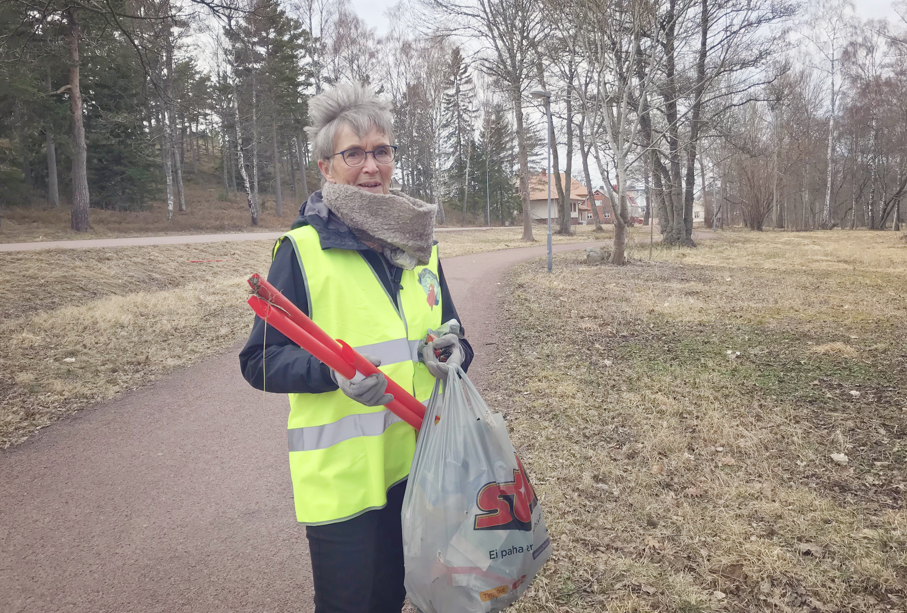 Dagens ålänning går och plockar skräp längs cykelvägen till Östernäs. Hon heter Eva Rundberg och bor i Mariehamn.