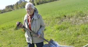 Vi träffar dagens ålänning Marita Eklund med spaden i högsta hugg ute på gården i Finström Pålsböle i eftermiddagssolen.