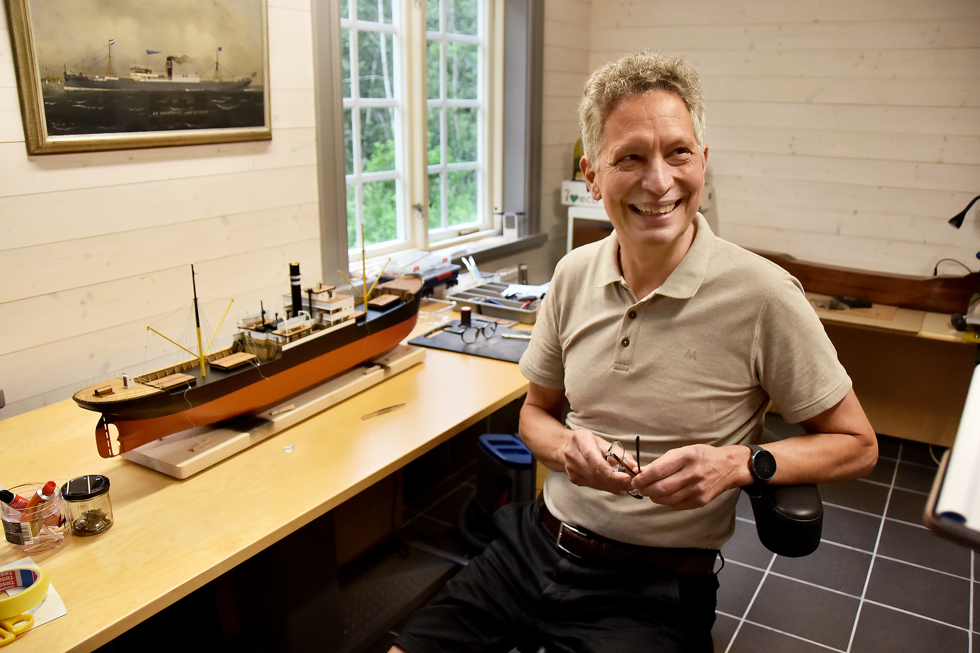 Han bygger sjöfartsmodeller: ”Ångfartygen har ett helt annat formspråk än dagens...