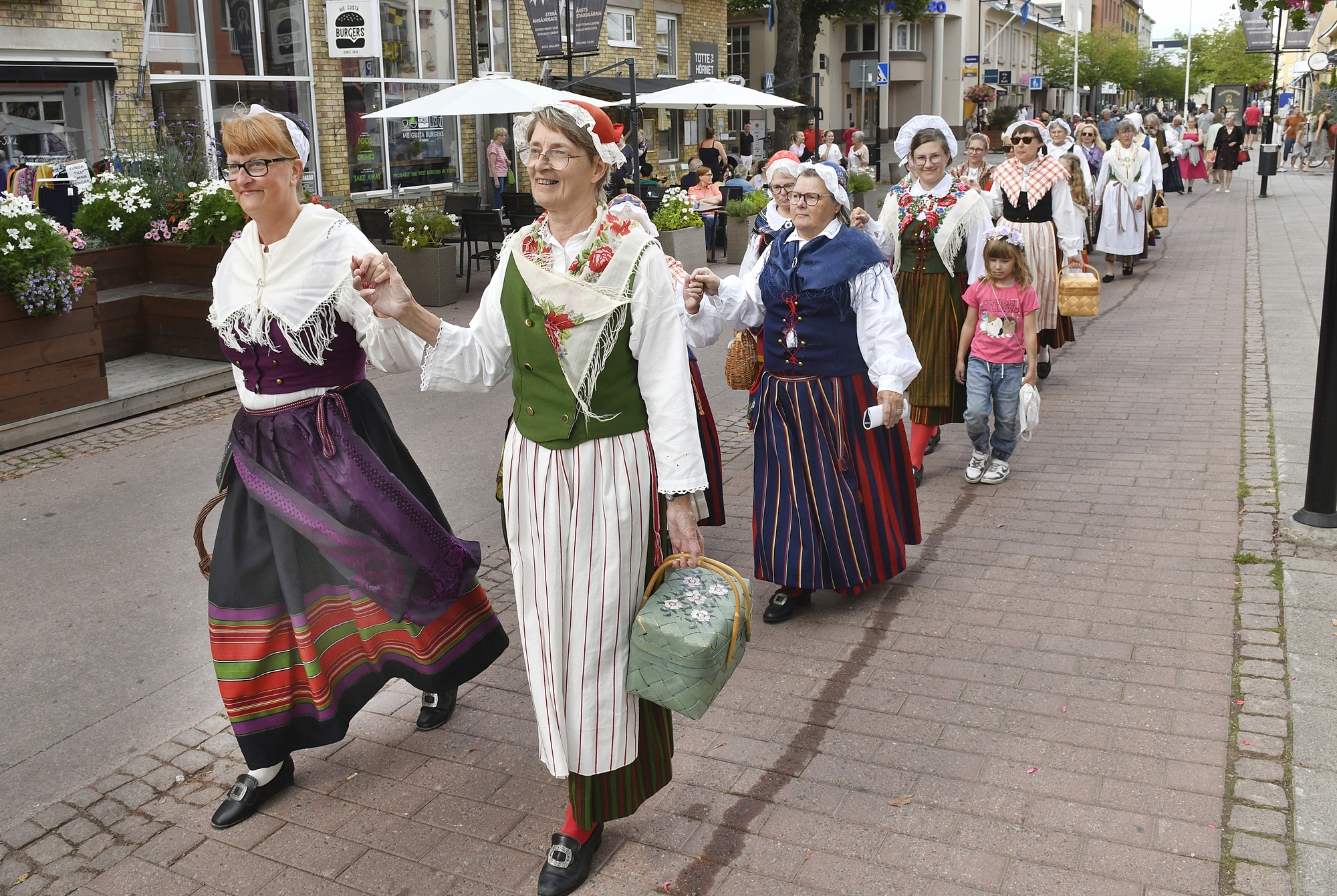 Drygt 20 personer klädde upp sig i folkdräkt och tågade genom Mariehamn.