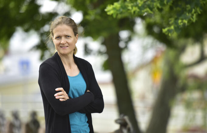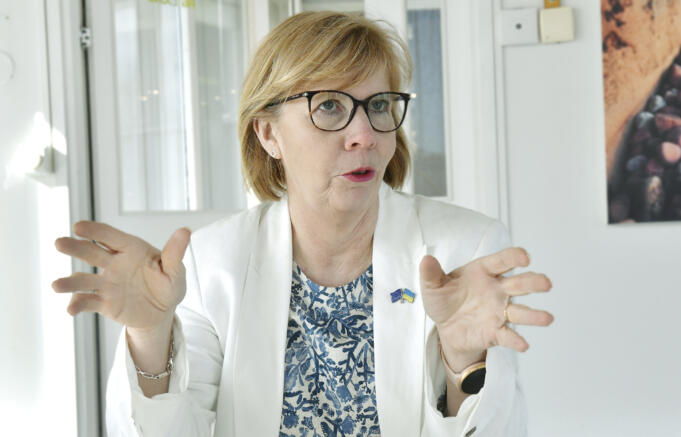 "Jag har vävt här i 15 år och märker att vi får in fler beställningar nu än tidigare", säger mariehamnaren Hannele Ögård, som räknat ut att hon vävt 180 meter trasmatta totalt i Röda Korsgårdens vävsal.