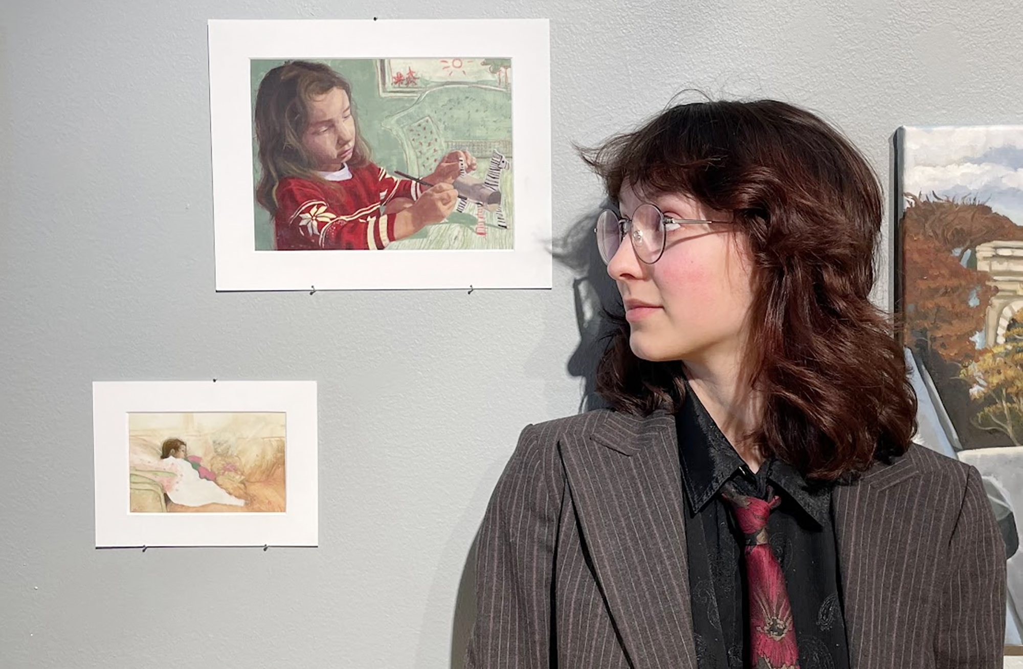 Utställningen bjuder på frihandsteckningar av ansikten i pastell och tusch.
