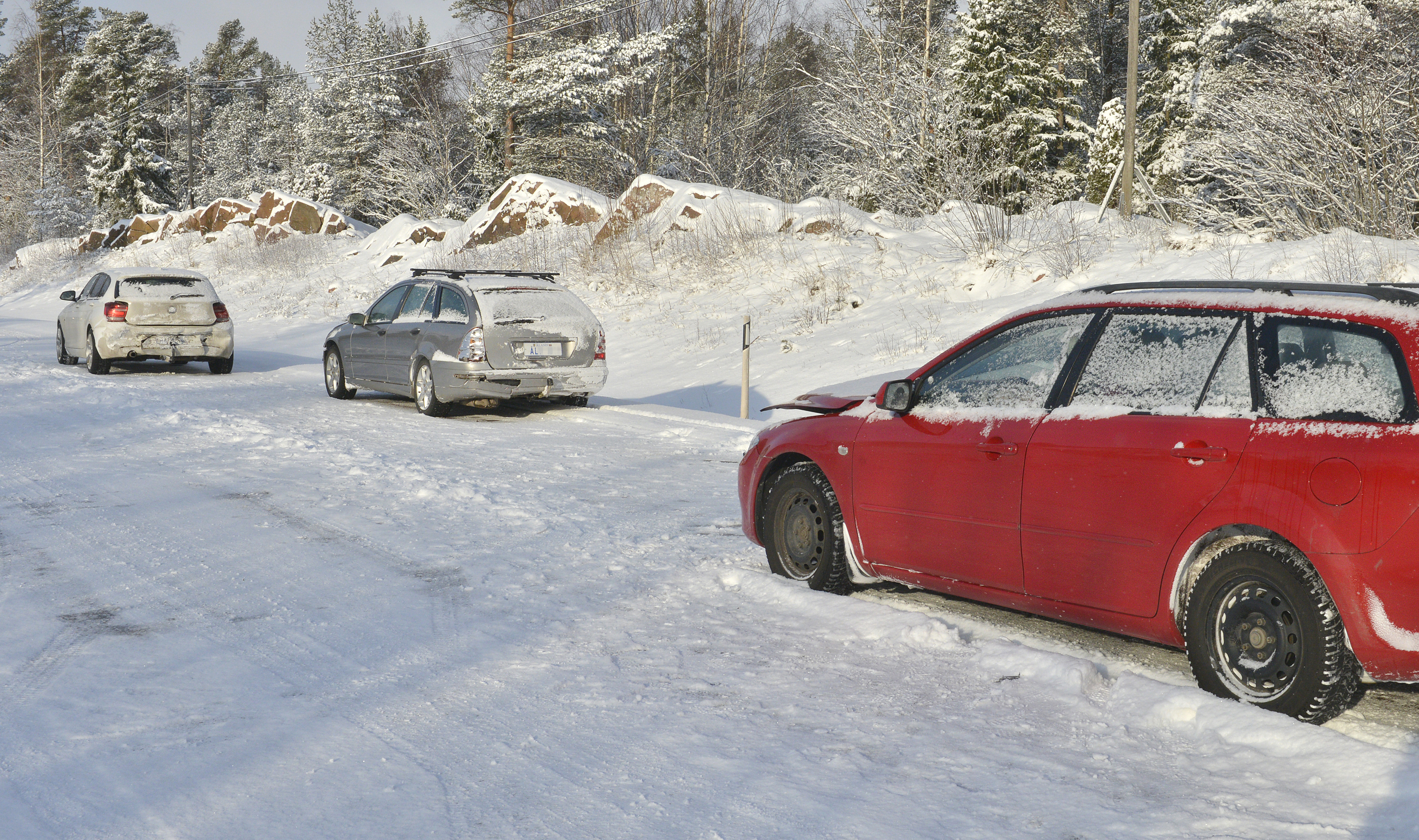 Tre bilar i olycka i Lemland