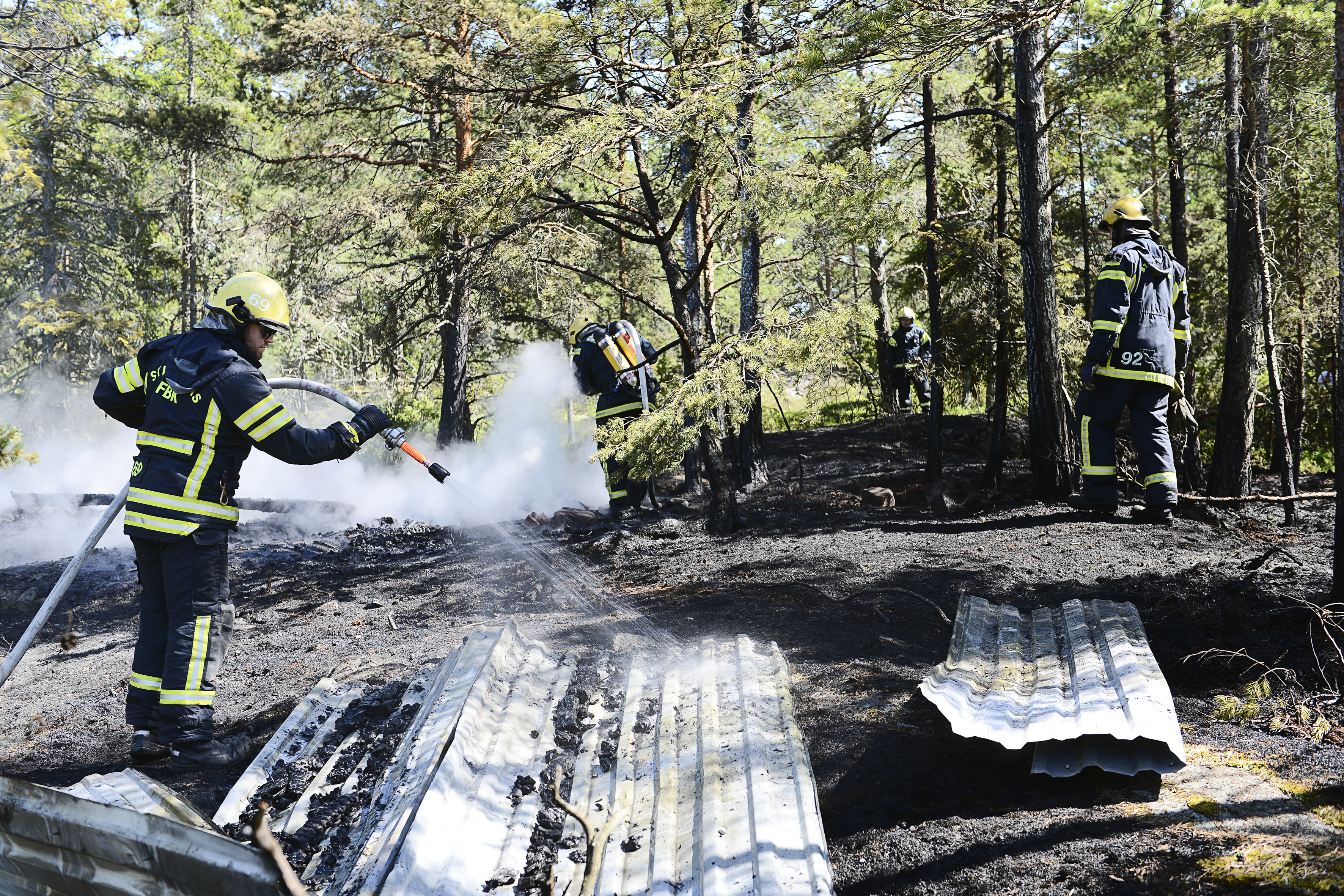 Tidigt på fredagsmorgonen totalförstördes en av de övergivna uthyrningsstugorna...