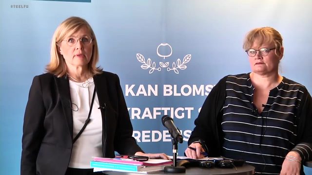 Lantråd Katrin Sjögren (Lib) leder pressinformationen tillsammans med lagtingsdirektör...