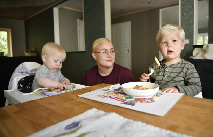 Foto: Jonas EdsvikI Finland har metoden baby lead weaning, barnstyrd matintroduktion på svenska, etablerat sig under senare år och blivit allt vanligare på Åland. Ina Mattssons söner Lucas Welander, 11 månader, och Elias Welander, 2 år fick båda börja öva på att äta själva vid sex månaders ålder. I deras familj äter alla numera samma mat och det underlättar vardagen, säger Ina