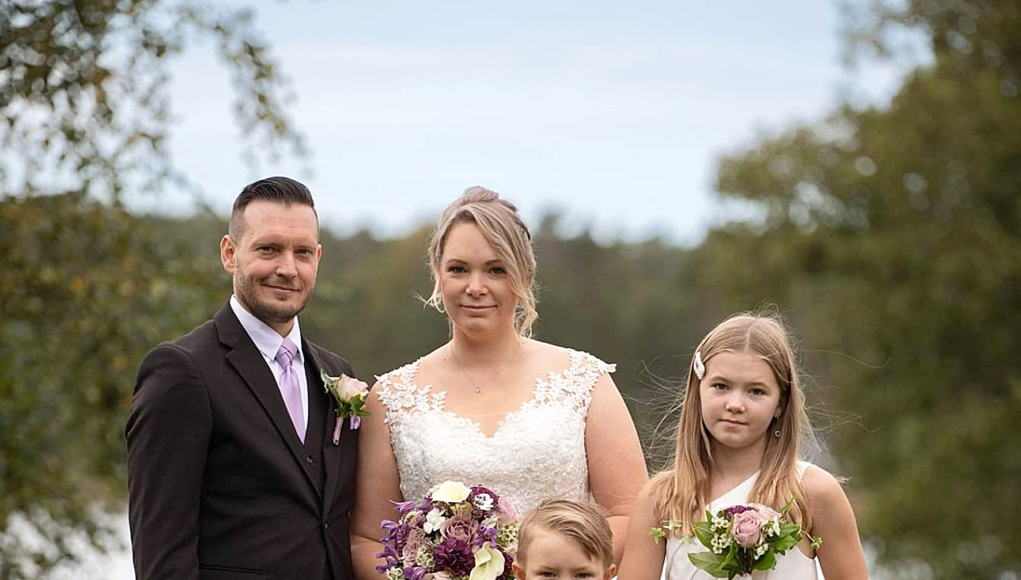 Sara Flöjt och Tony Risberg vigdes den 23 september i Jomala kyrka. Vigseln förrättades av kyrkoherde Stefan Äng. Makarna behåller sina respektive efternamn. Med på bilden är barnen Miranda, Leo och Linnea.