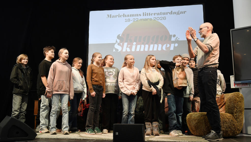 Foto: Jonas Edsvik5A i Vikingaåsen vann pris för bästa bokidé till Lena Ollmark och Mats Wänblad. Skräck- och fackböcker firades på femmornas läsfest Familjen 19:00 torsdag, 19 mars, 2026 DELA Facebook Mer läsning Bokälskarnas årliga högtid närmar sig Läskiga bilder och berättelser på femmornas läsfest Lerin ställer in, Saijomaa kommer till litteraturdagarna
