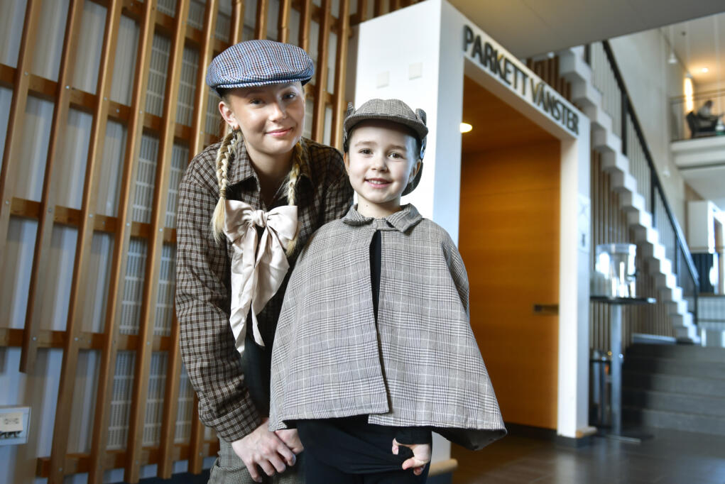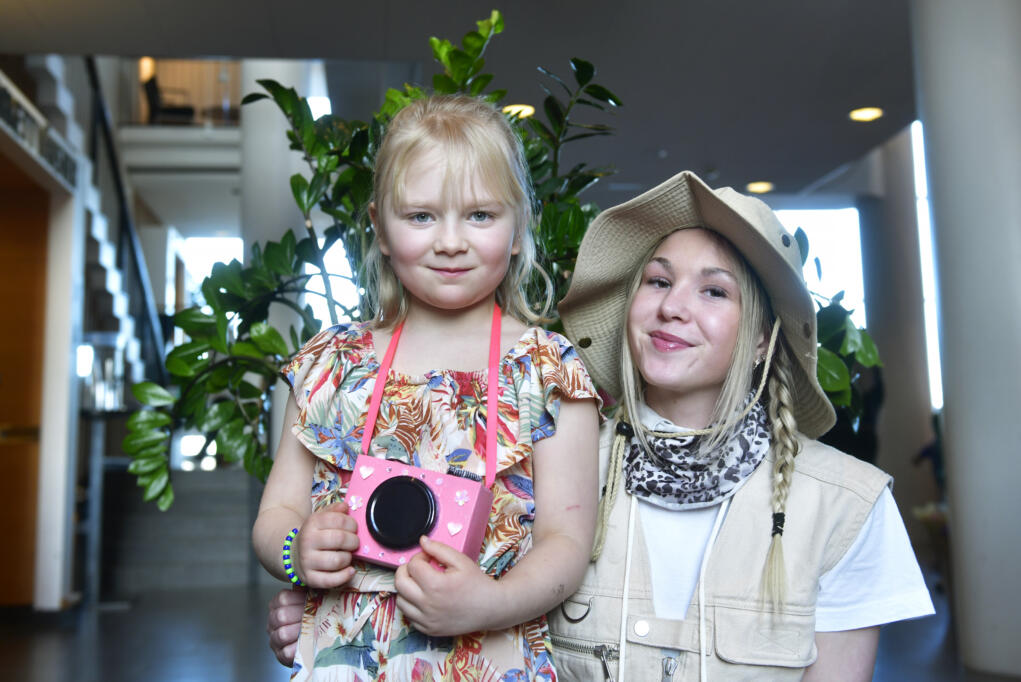 Ellen och Lova berättar att de fixat kostymerna själva. Lova har till och med gjort en egen rosa kamera.