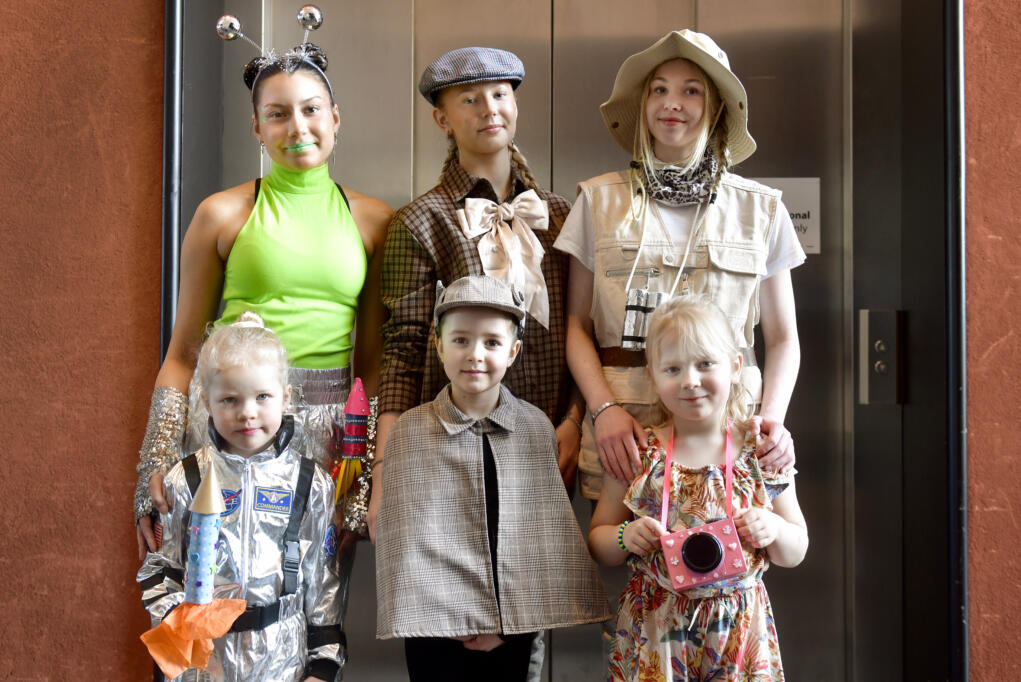 Några peppade dansare som Nya Åland möter innan showen är Lova Häggblom utklädd till rymdvarelse, Ellen Fors utklädd till detektiv och Aili Bertelin utklädd till safariguide. Alla är taggade inför dansshowen.