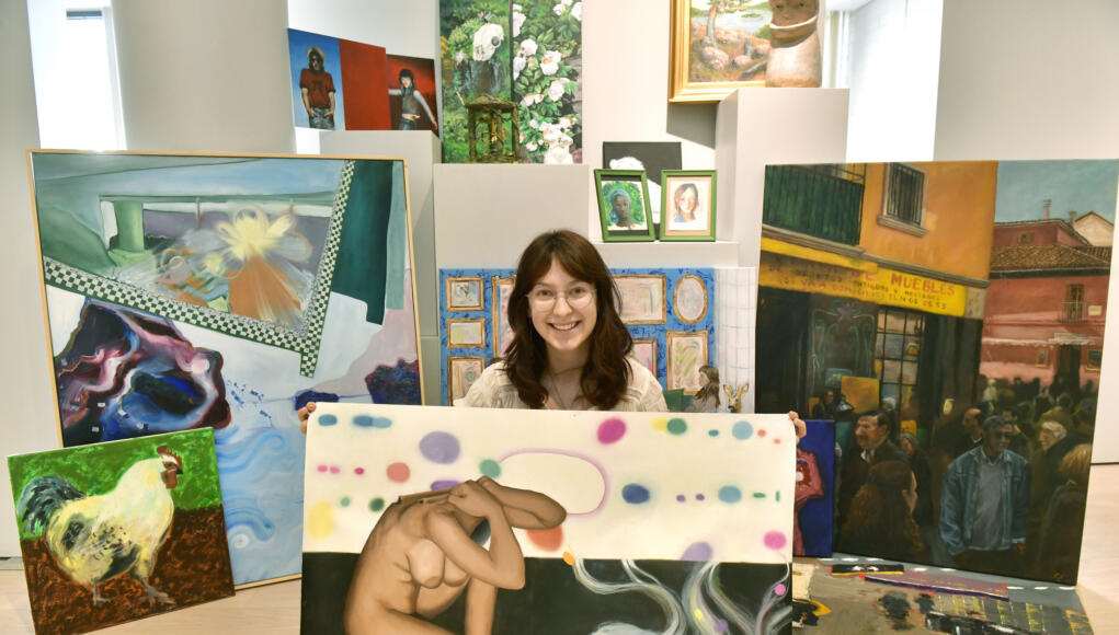 Foto: Matilda SaulCuratorn Maria-Louisa Pfeifer har med ett eget verk i utställningen. Hon visade samma verk i Köpenhamn vid ett genreöverskridande konstevenemang nyligen som bland annat involverade grafisk musik. Ung konst tar Galleri Norden i besittning Kultur 19:00 lördag, 28 mars, 2026 DELA Facebook Mer läsning Fotoutställning som varvar porträtt med rost och frost Kroppslig konst visas på Galleri Norden Svenska kulturfonden ger pris till Maria-Louisa Pfeifer