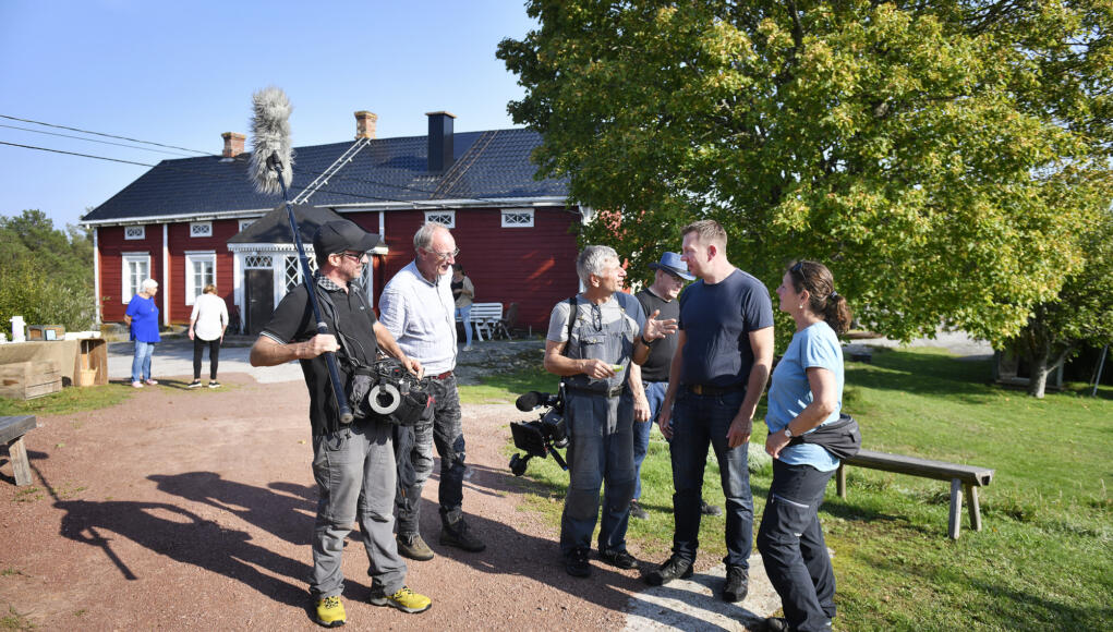 Ljudteknikern Gero von Schneider-Marientreu, regissören Holger Preusse, fotografen André Zscocke och inspelningsproducenten Tatjana Reiffi från det tyska tv-programmet ”Zu Tisch in” (Till bords) följde i en veckas tid Conny Jansson och hans familj på deras gård Sommarö på Föglö sommaren 2024 .