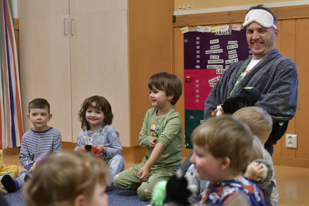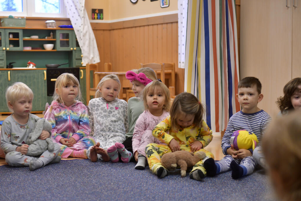 Alla barn kom till daghemmet Björkdungen med pyjamas. Från vänster: Colin Carlson, Anastasya Masart, Tyra Odenborg, Sofie Lundström, Jasmine Bergman, Nima Sjöblom och Melvin Häger.