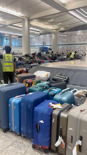 Musse och Amanda fick lämna flygplatsen genom en nödutgång. När de stod och väntade på transporten kom nya smällar.