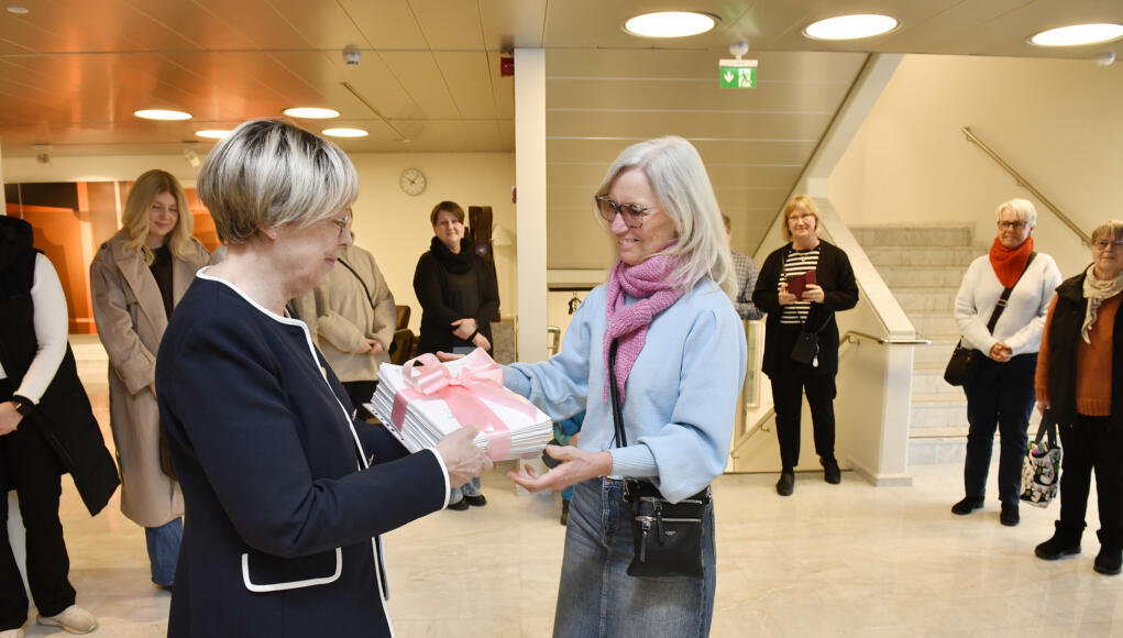 Makalöst. Rekordmånga. Engegagerar alla.Det var några av de spontana kommentarerna när cancerföreningen idag, måndag, lämnade över den tjocka bunten med namnlistor för utökad mammaografiscreeningålder på Åland.