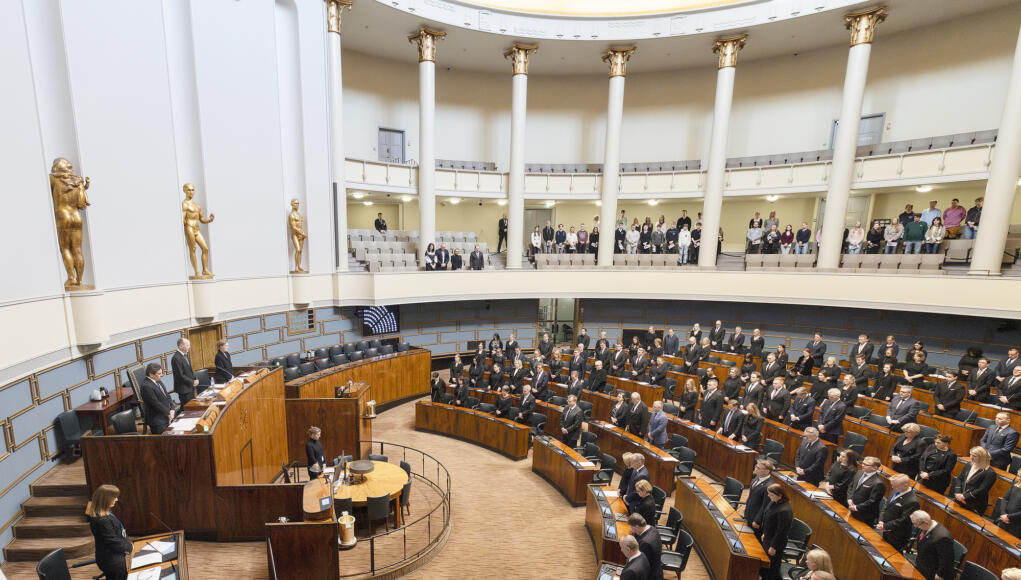 Foto: Hanne Salonen / RiksdagenRiksdagen höll en tyst minut för att hedra offren för Rysslands krig mot Ukraina på tisdagen och Ukrainas ambassadör fanns på läktaren. Klädkoden var mörk kostym. Riksdagen höll tyst minut på fyraårsdagen Nyheter 18:26 tisdag, 24 februari, 2026 DELA Facebook Mer läsning Hittade rånare i köket mitt i natten Riksdagen höll tyst minut på fyraårsdagen BILDSPEL Hundar mot Putin samlades på Ukrainaplatsen – ”De är trogna hundprotestanter”