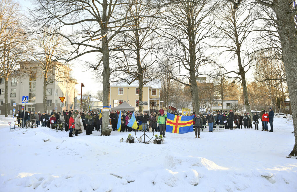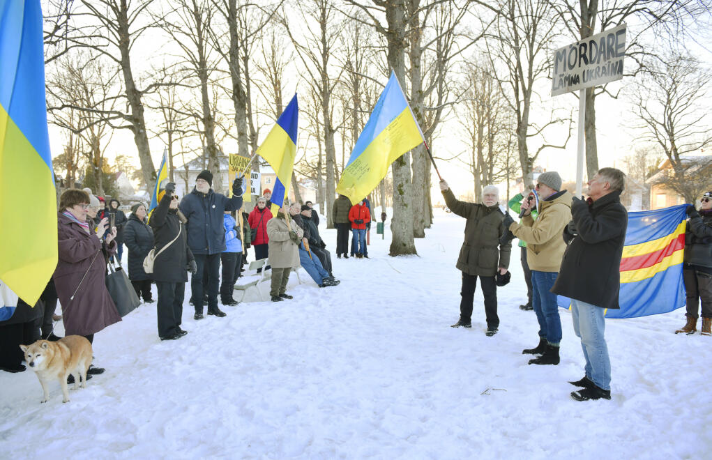 Våfflor såldes till förmån för Ukrainahjälpen och hundar skällde mot Putin. Det var stor uppslutning på fyra-årsdagen av Rysslands invasion av Ukraina.