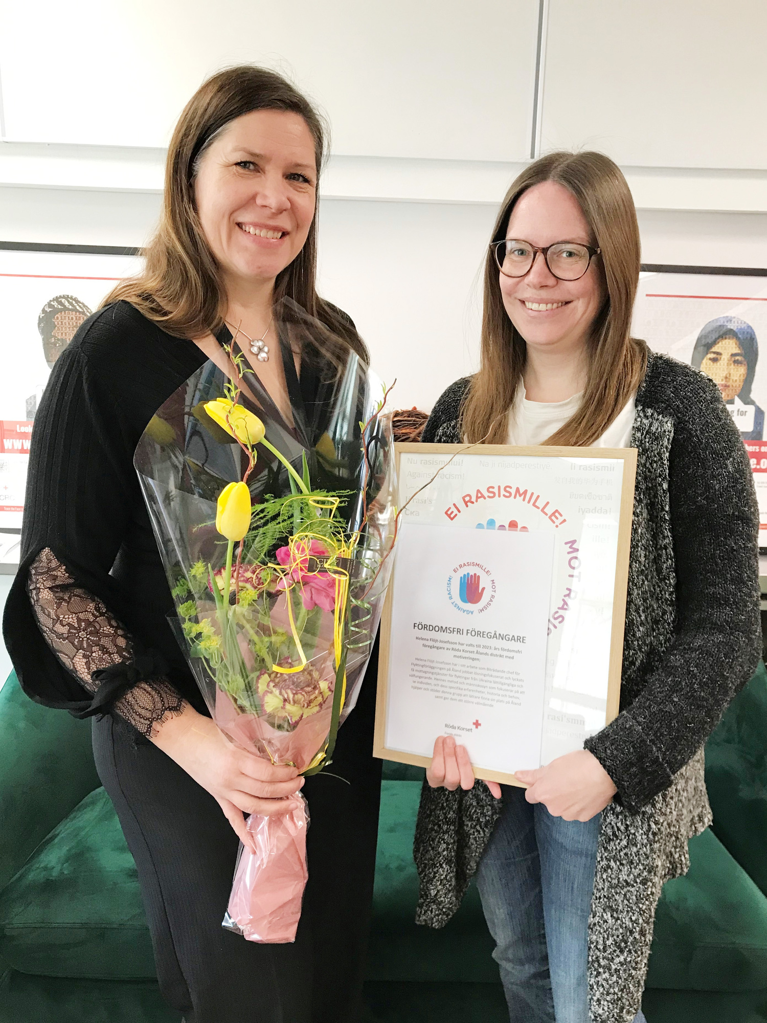 Helena Flöjt-Josefsson får utmärkelsen årets fördomsfria föregångare av Röda Korsets Ålandsdistrikt.