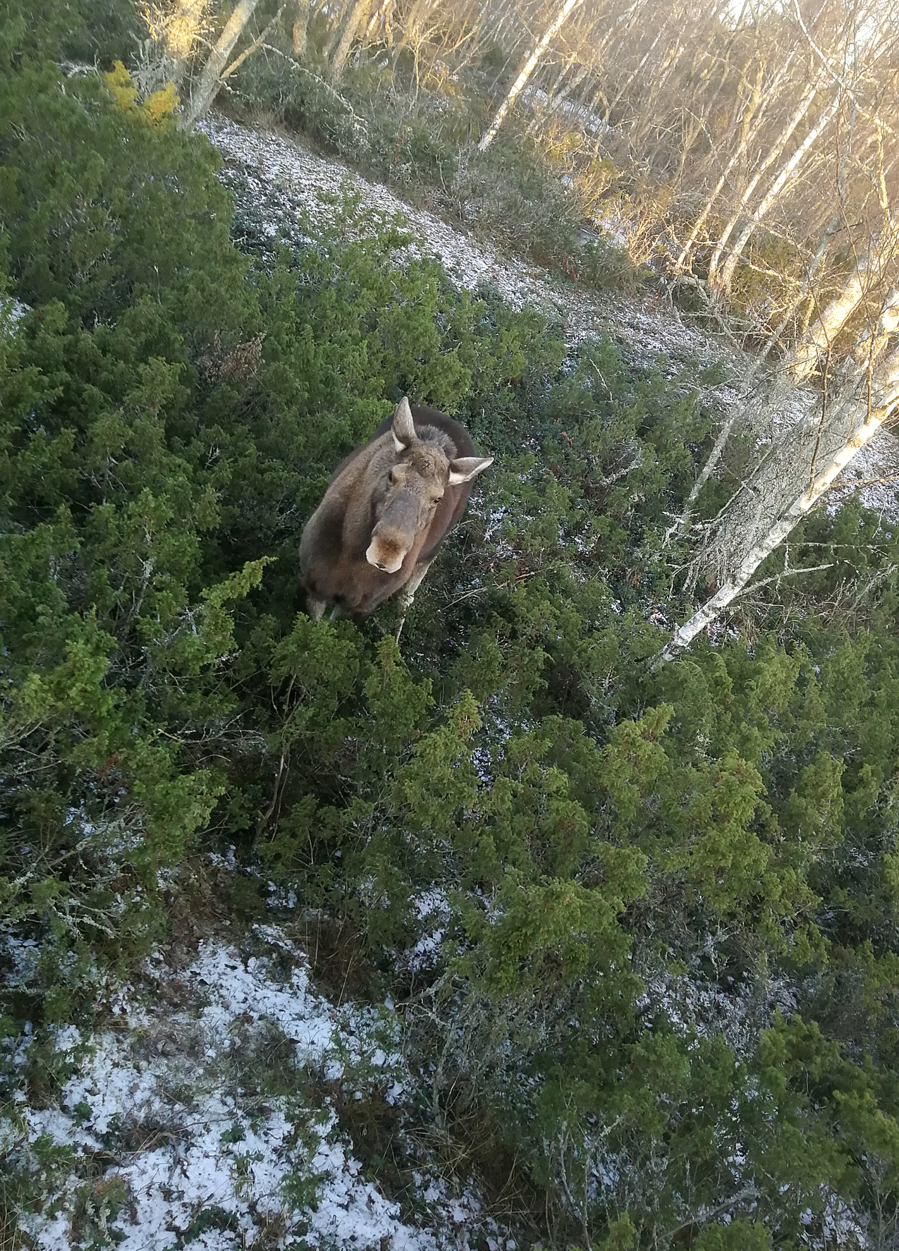 Tanja jagades upp i ett träd av en älg