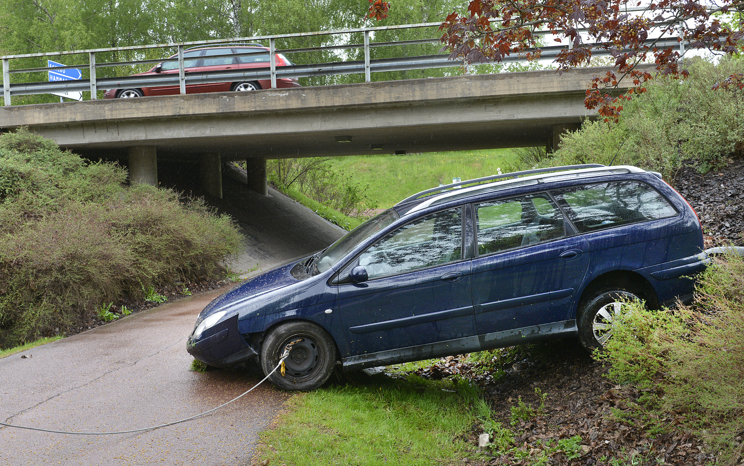 Bil körde ner i rökerirondellen