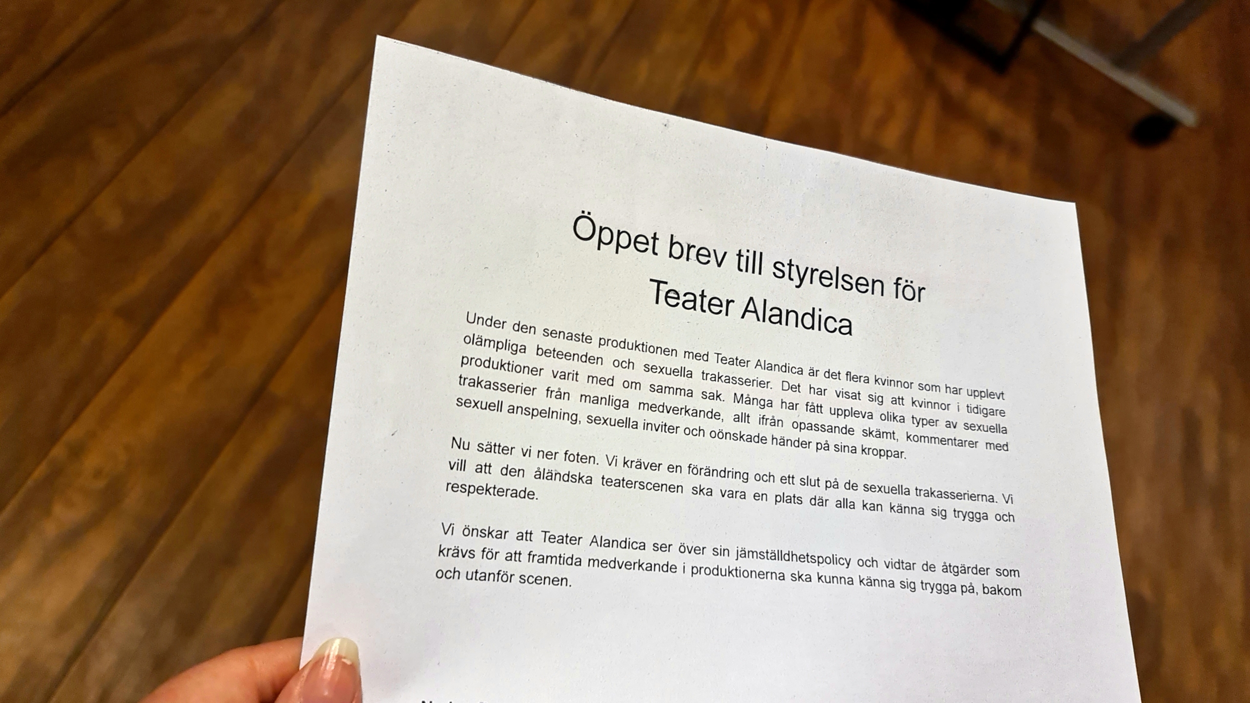34 kvinnor i upprop mot Teater Alandica