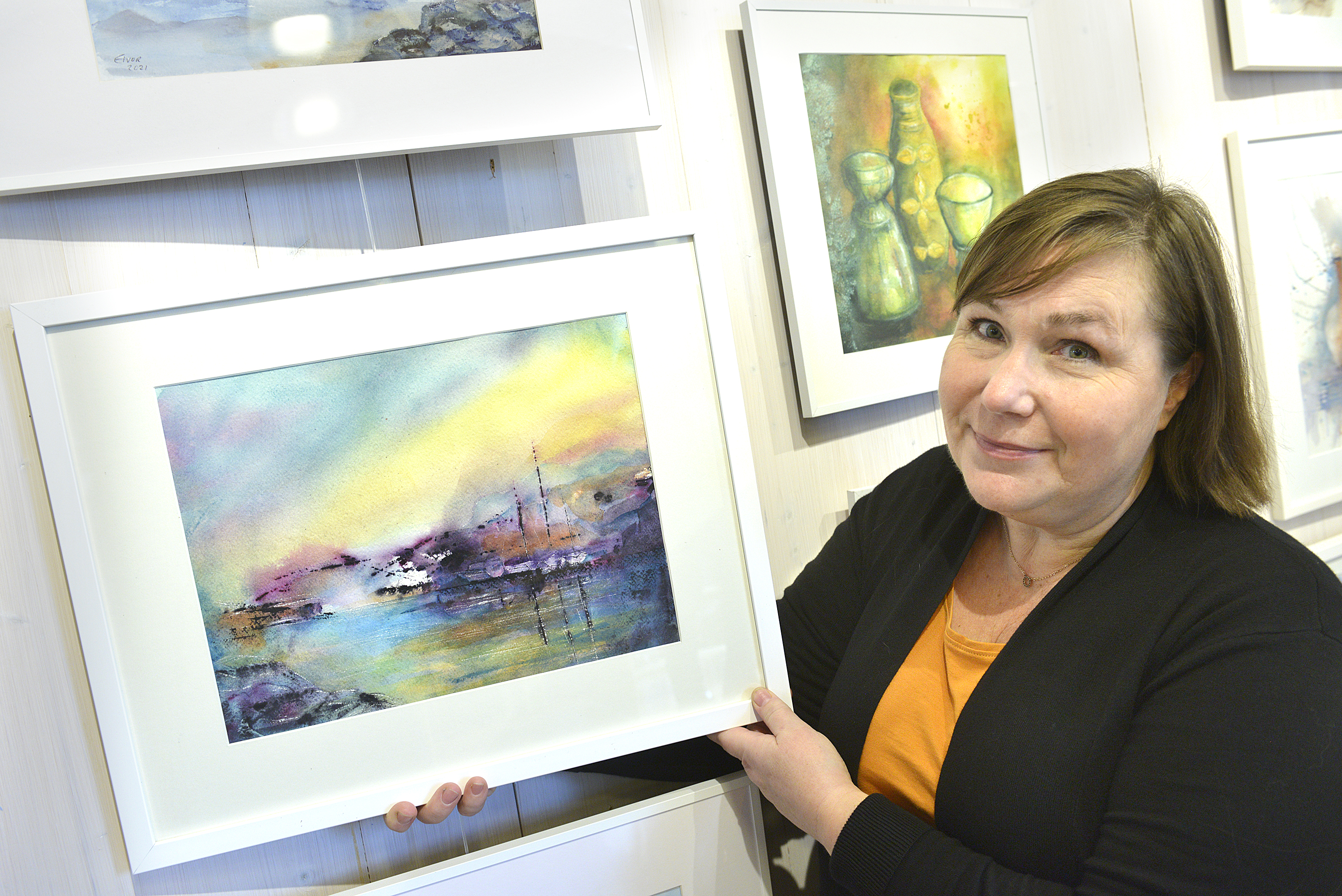 Åtta åländska målare som gått på kurs i september hänger nu i Lemlands bibliotek.