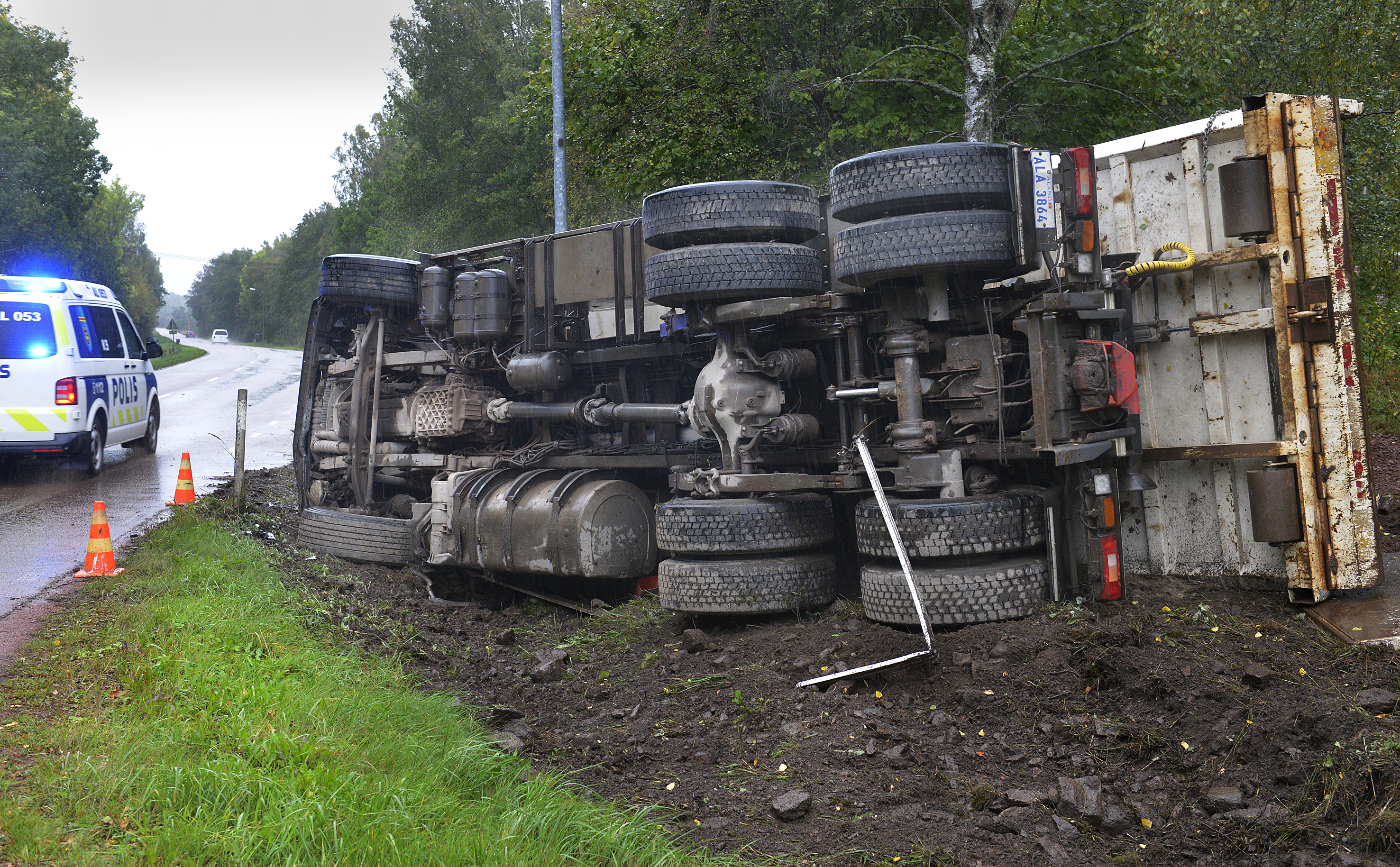 Lastbilsförararen som på torsdagen körde av Järsövägen i Mariehamn är misstänkt för äventyrande av trafiksäkerheten.