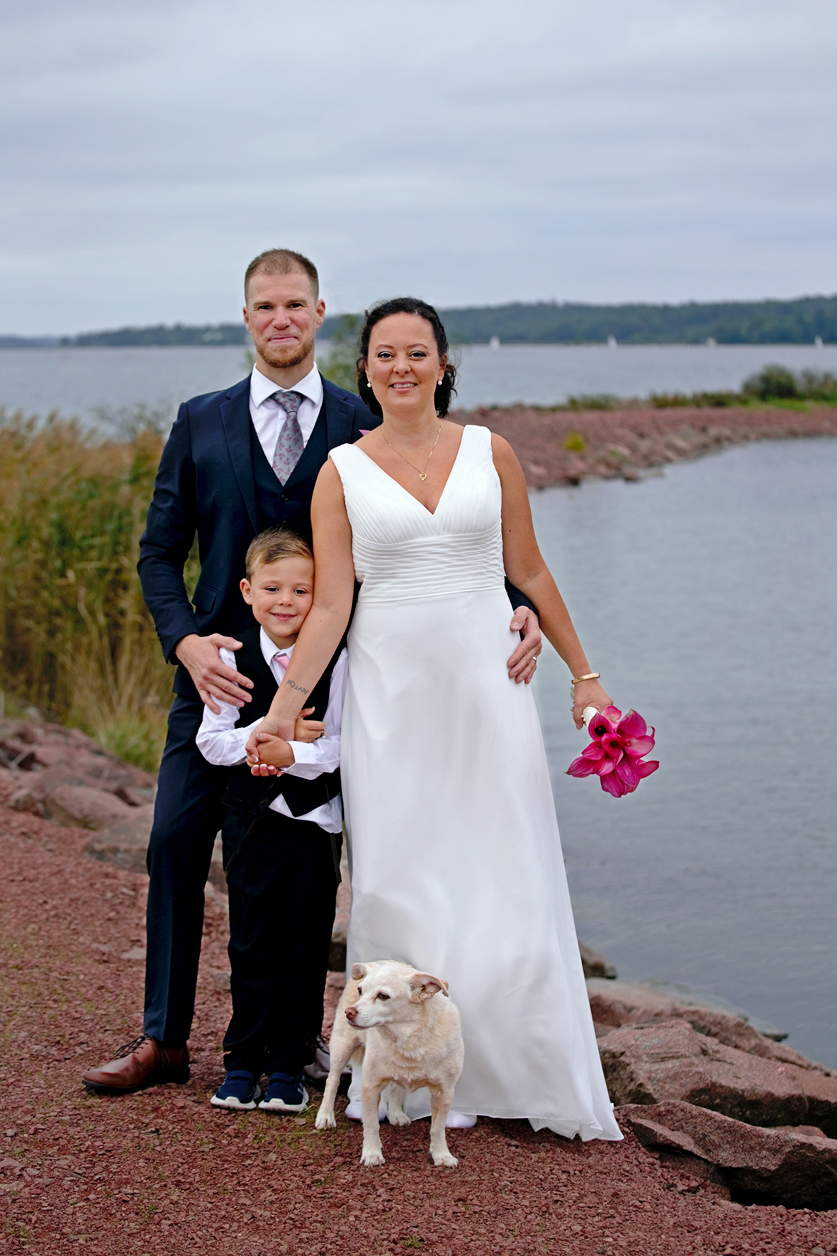 Christan Karlsson och Lynn Häggblom gifte sig den 28 augusti i Jomala kyrka. Vigseln förrättades av Laura Serell. Med på bilden är sonen Anton...