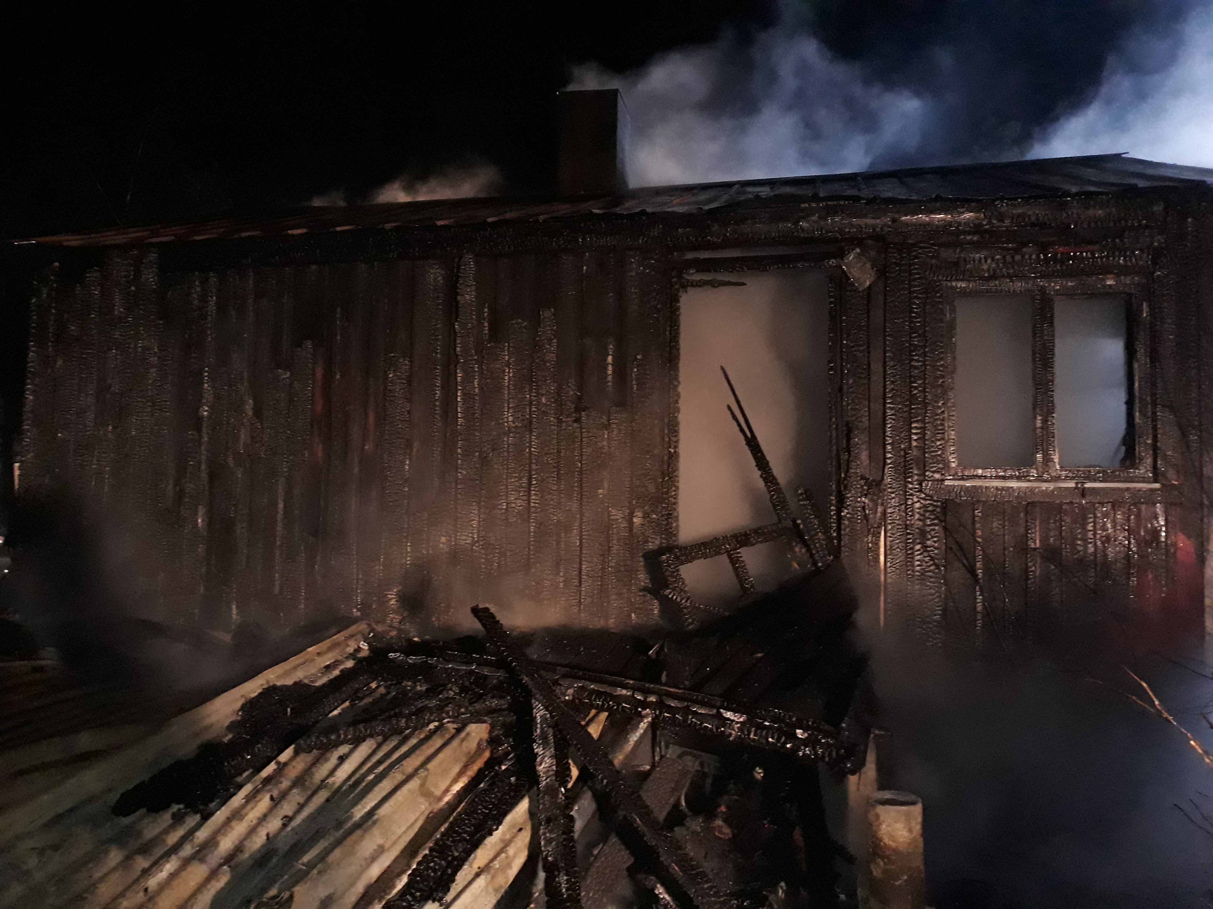 En stuga i Eckerö Marby förstördes i en brand i kväll måndag. Brandkåren larmades vid halvåttatiden.
