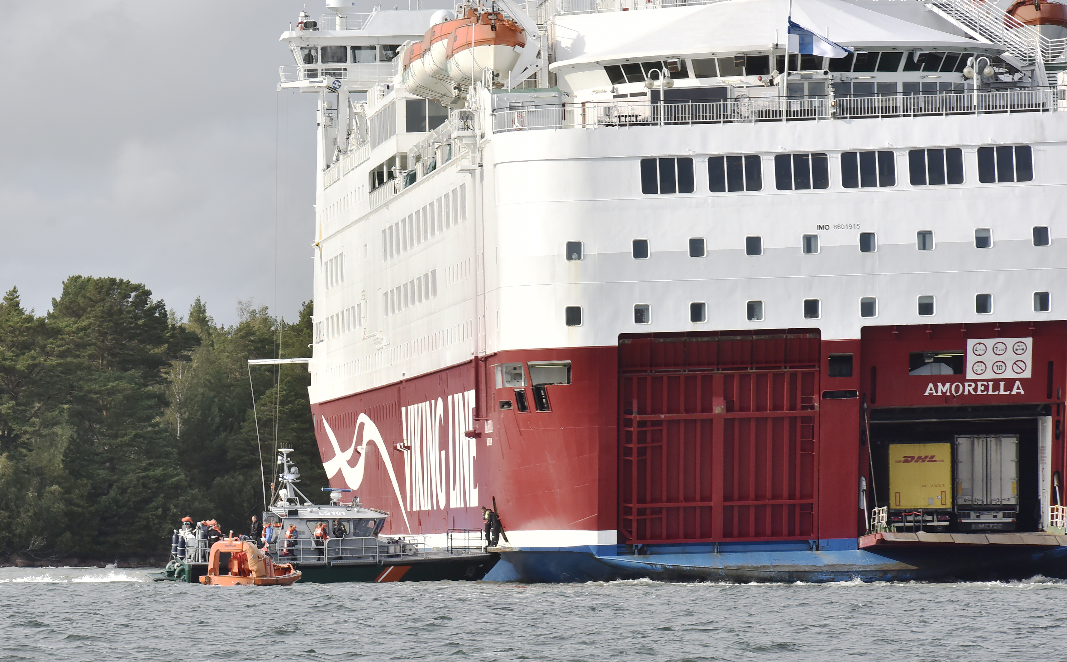 Samtidigt undersöker Viking Line omfattningen på Amorellas skador,...