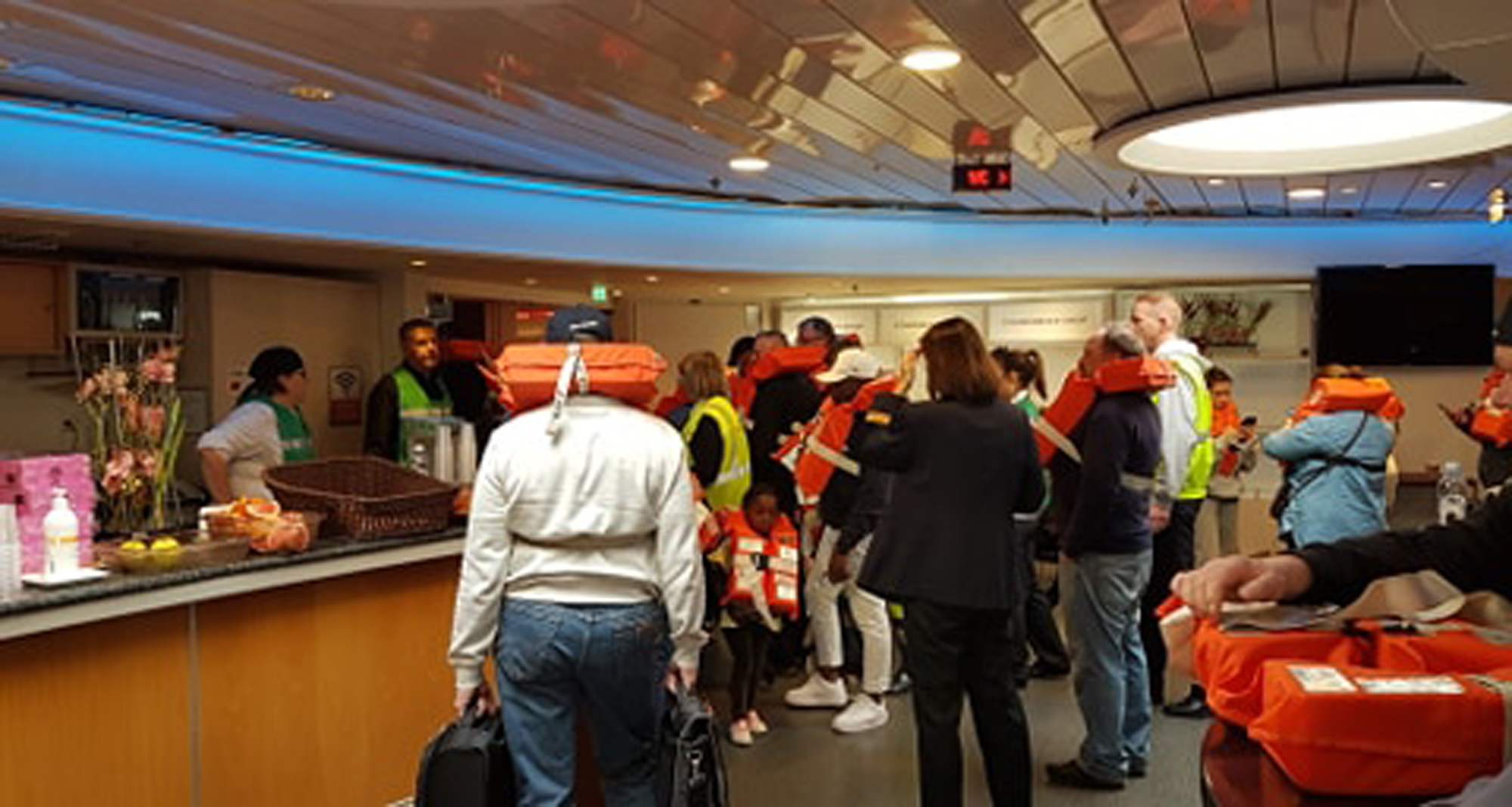 Viking Amorellas alla passagerare är nu på land vid evakueringscentret som skapats vid Strandnäs skola i Mariehamn.