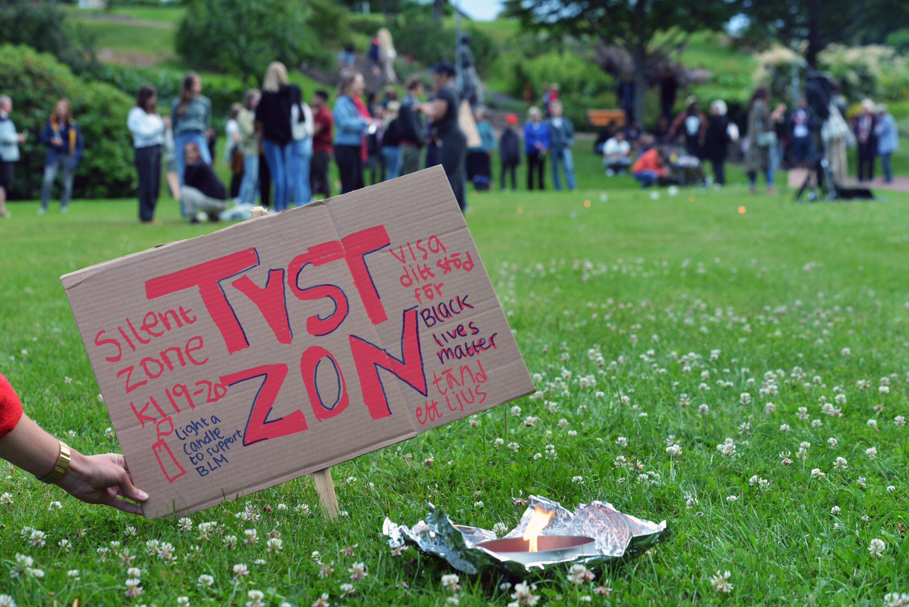 Det var en stillsam uppslutning i Stadshusbacken där Ålands Black Lives Matter demonstration hölls på tisdagskvällen. Med tända ljus och skyltar så visade deltagarna...