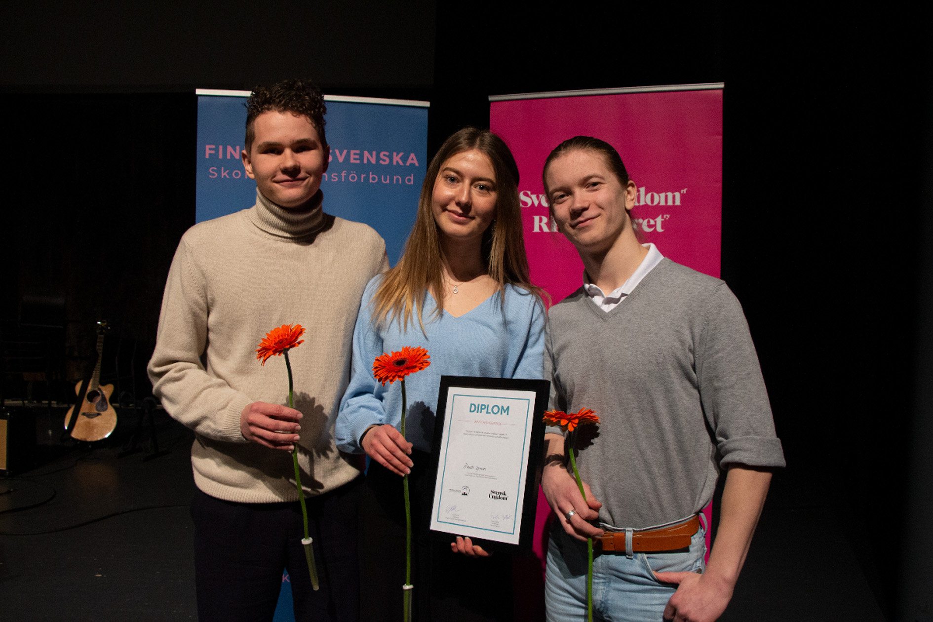 Albert Söderback, Alva Kahnberg och Linus Höglund från Ålands lyceum vann finalen i Debattävlingen mellan svenskspråkiga skolor på andra stadiet som hölls i Tölö...