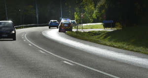 – Hydrauloljeläckage från Godbybacken i riktning mot Mariehamn. Mycket hal vägbana....