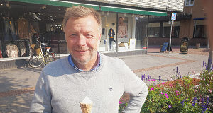 Robert Söderdahl tar en glass medan han väntar på frun på Torggatan. Han har anlagt ett sommarskägg som snart ska rakas bort.