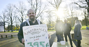Från fönstren på Nya Ålands redaktion ser vi dagens ålänning, Fredrik Granlund, som står vid ett bord mitt på Torget. I händerna håller han...