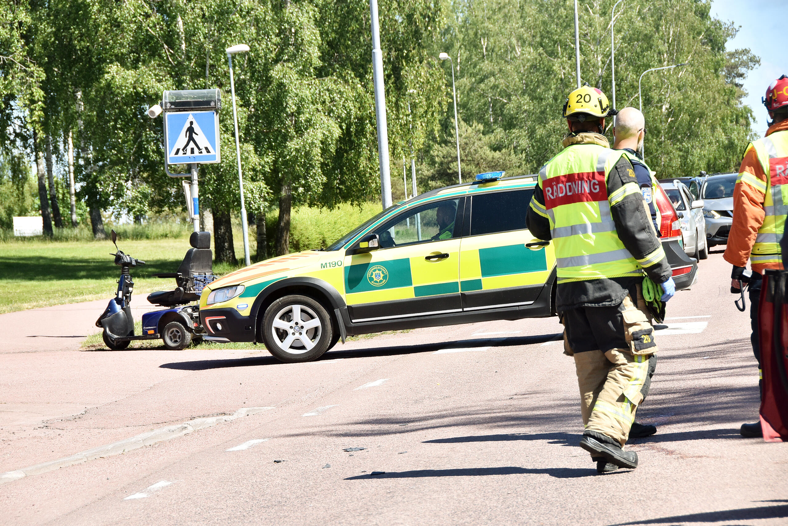 Permobil och personbil i krock på Sjukhusvägen