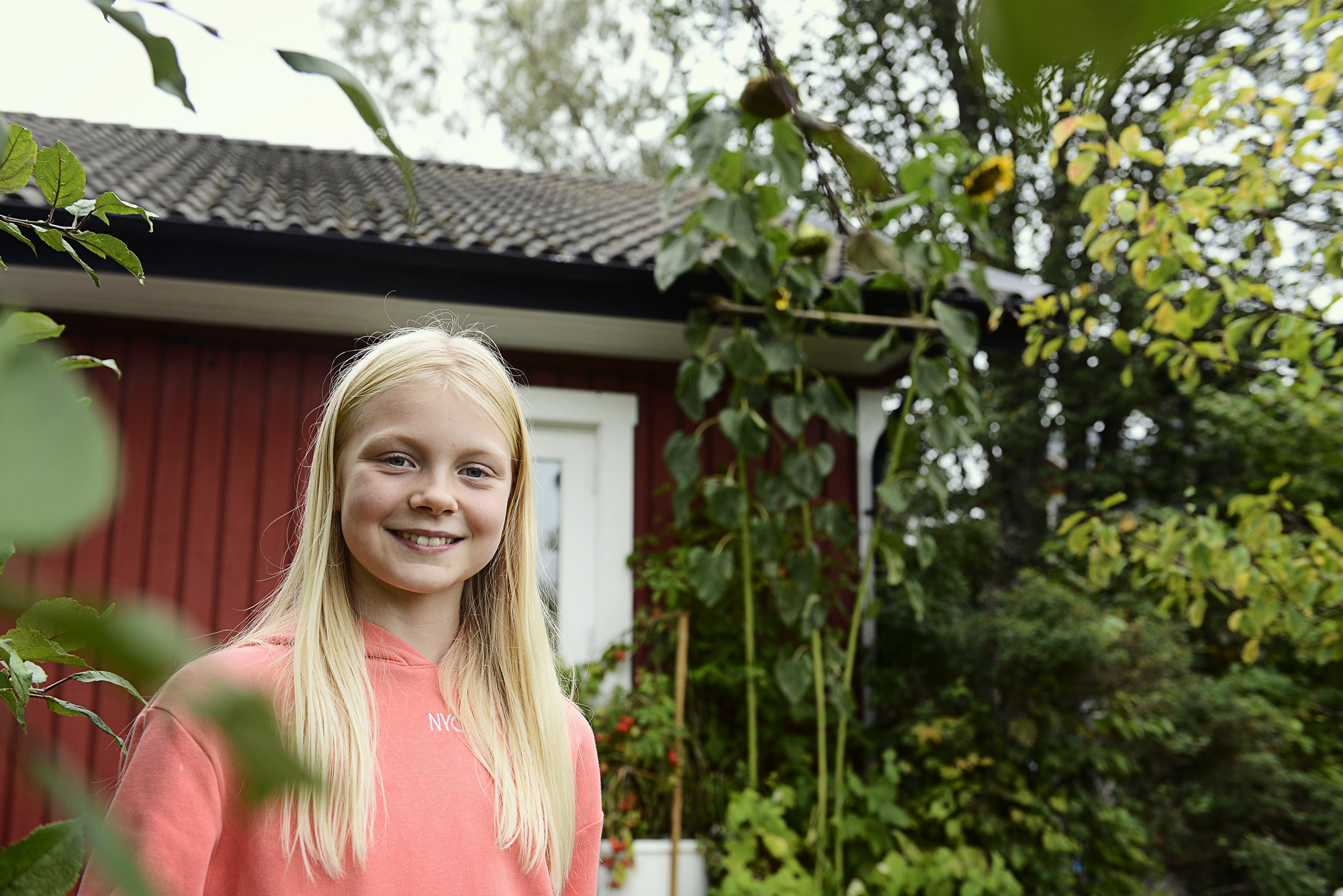 Hennes solros kan vara Svenskfinlands längsta. Noella Rosengren, 10 år, berättar om hemligheten bakom solrosodling.