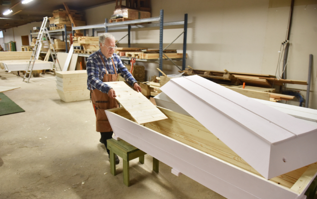 En lokalt tillverkad kista i åländskt virke som inte lämnar spår i naturen.