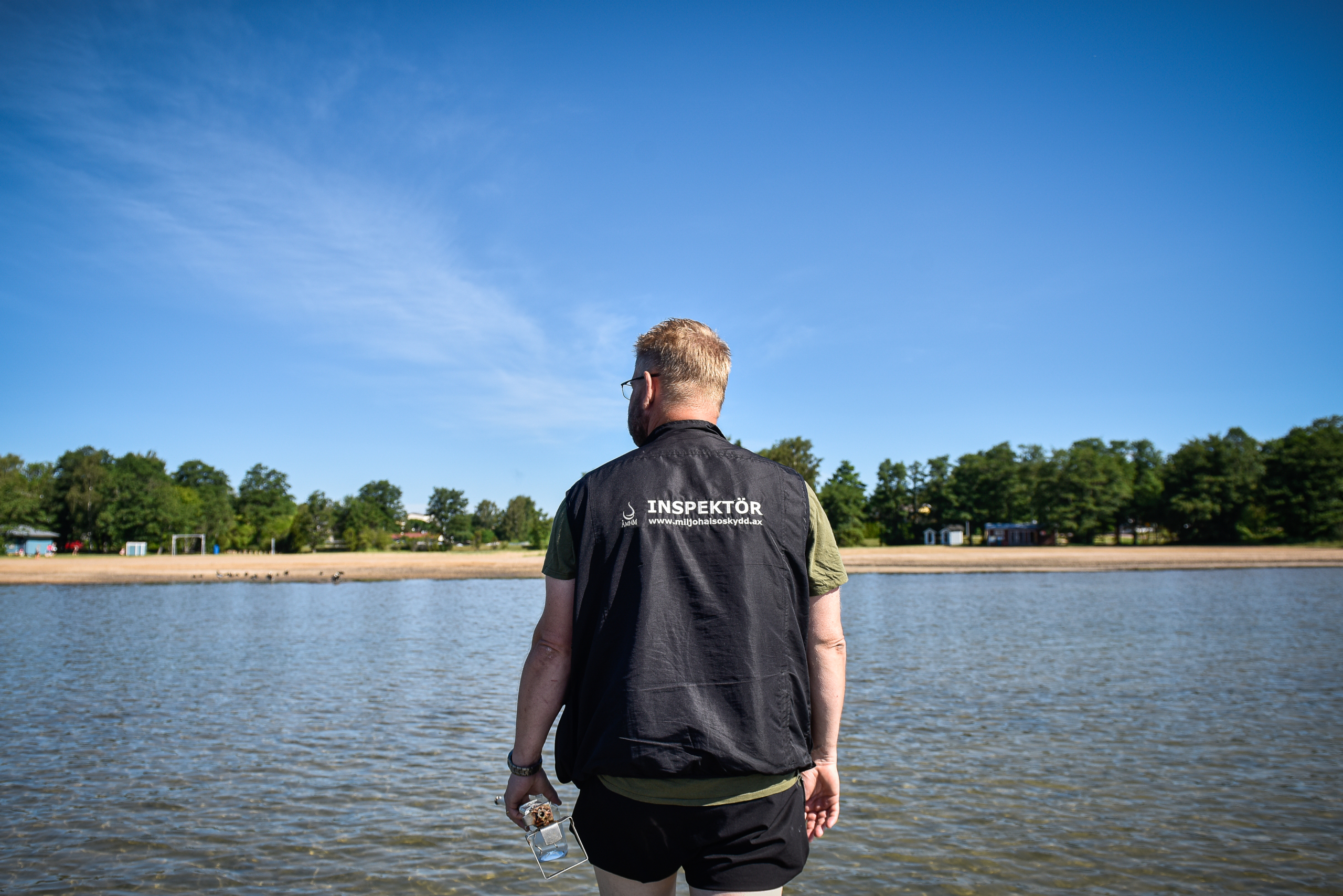 Magnus Eriksson, miljöskyddsinspektör hos ÅMHM, säger att vattnet vid stranden i Godby innehåller...