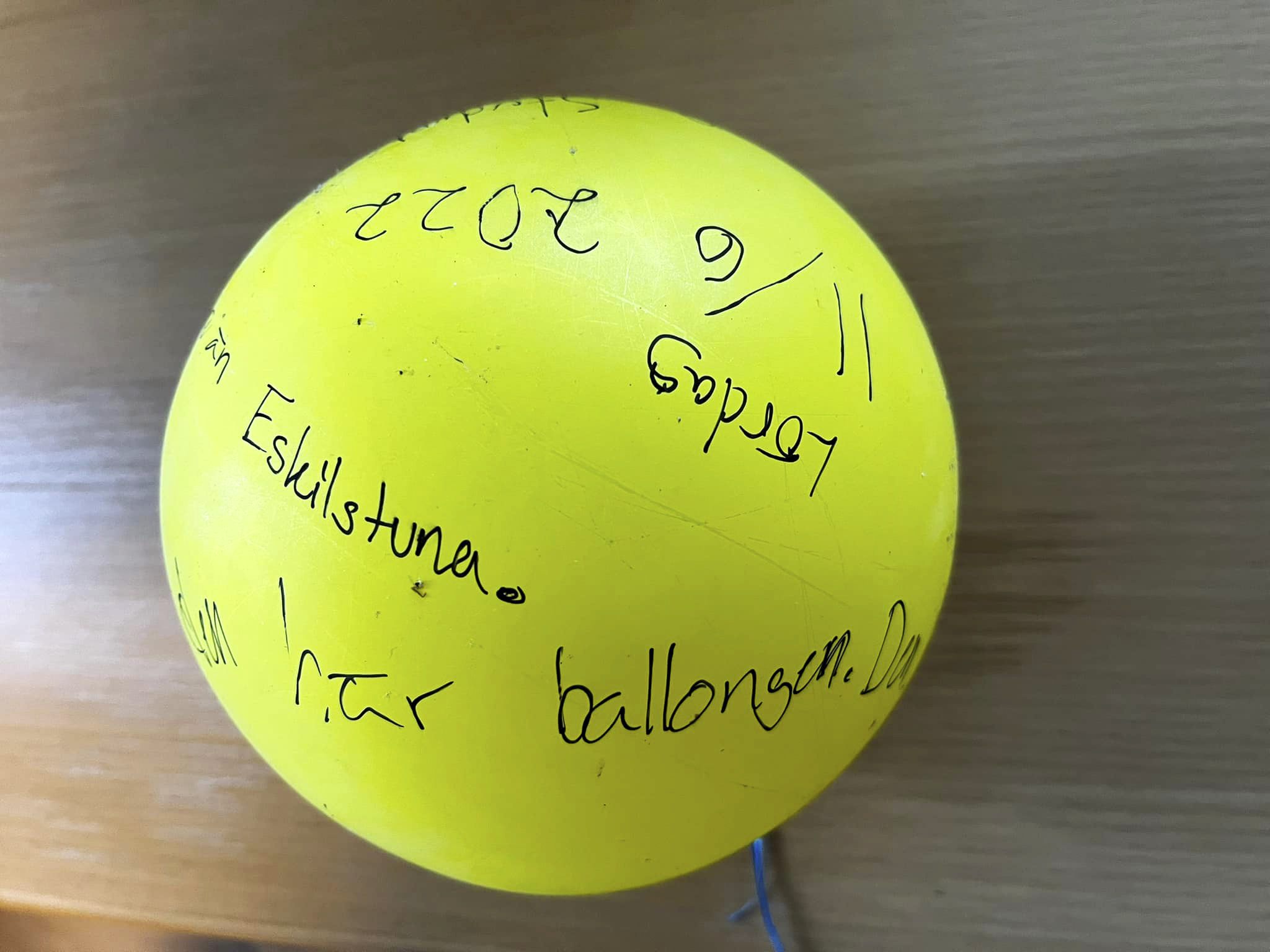 En gul ballong från Eskilstuna landade på Kökar där den hittades av kommundirektören Niclas Karlsson.