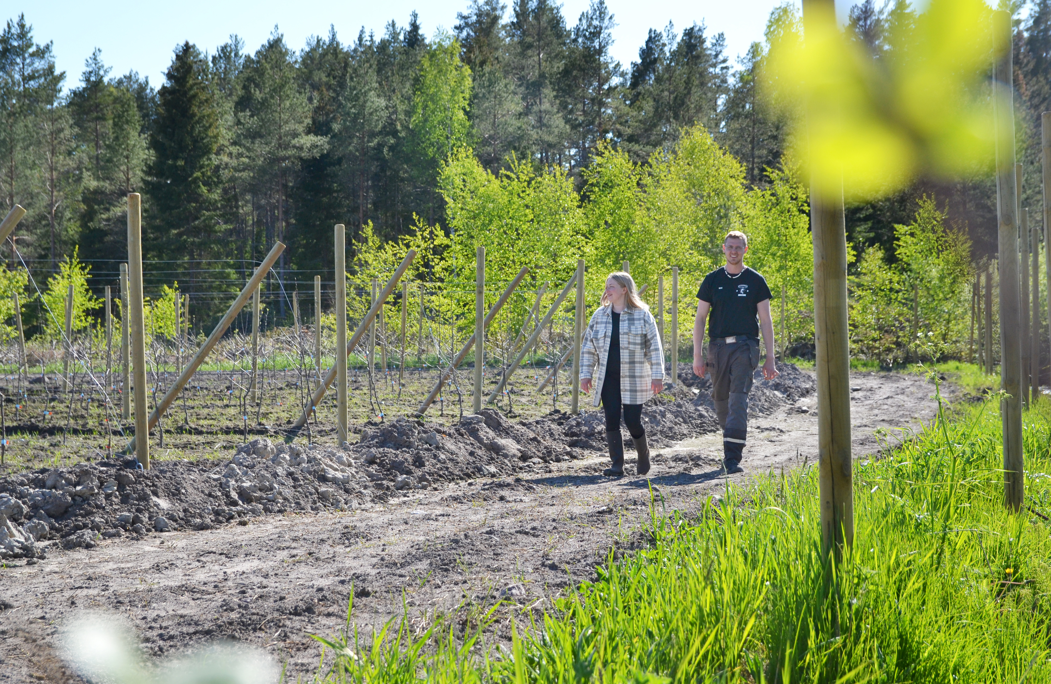 Gräggnäs bondepar Frida Sjöroos och Nicklas Sundqvist storsatsar på äppelträd.– Just nu är äppel en säkrare business än mjölkkor, säger Sjöroos.