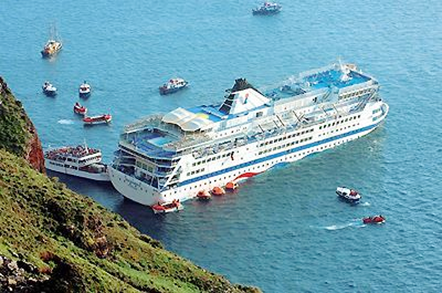 Fartyget Sea Diamond, tidigare Birka Pincess, måste bärgas. Det menar de boende på ön Santorini, som nu riskerar att drabbas när fartyget vittrar sönder. Det...