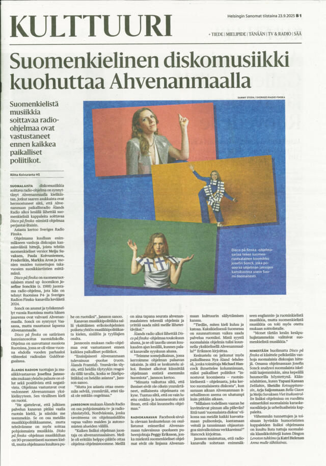 ”Finskspråkig discomusik het potatis på Åland”: ungefär så kan man översätta rubriken till en helsidesartikel i Helsingin Sanomat i tisdags.