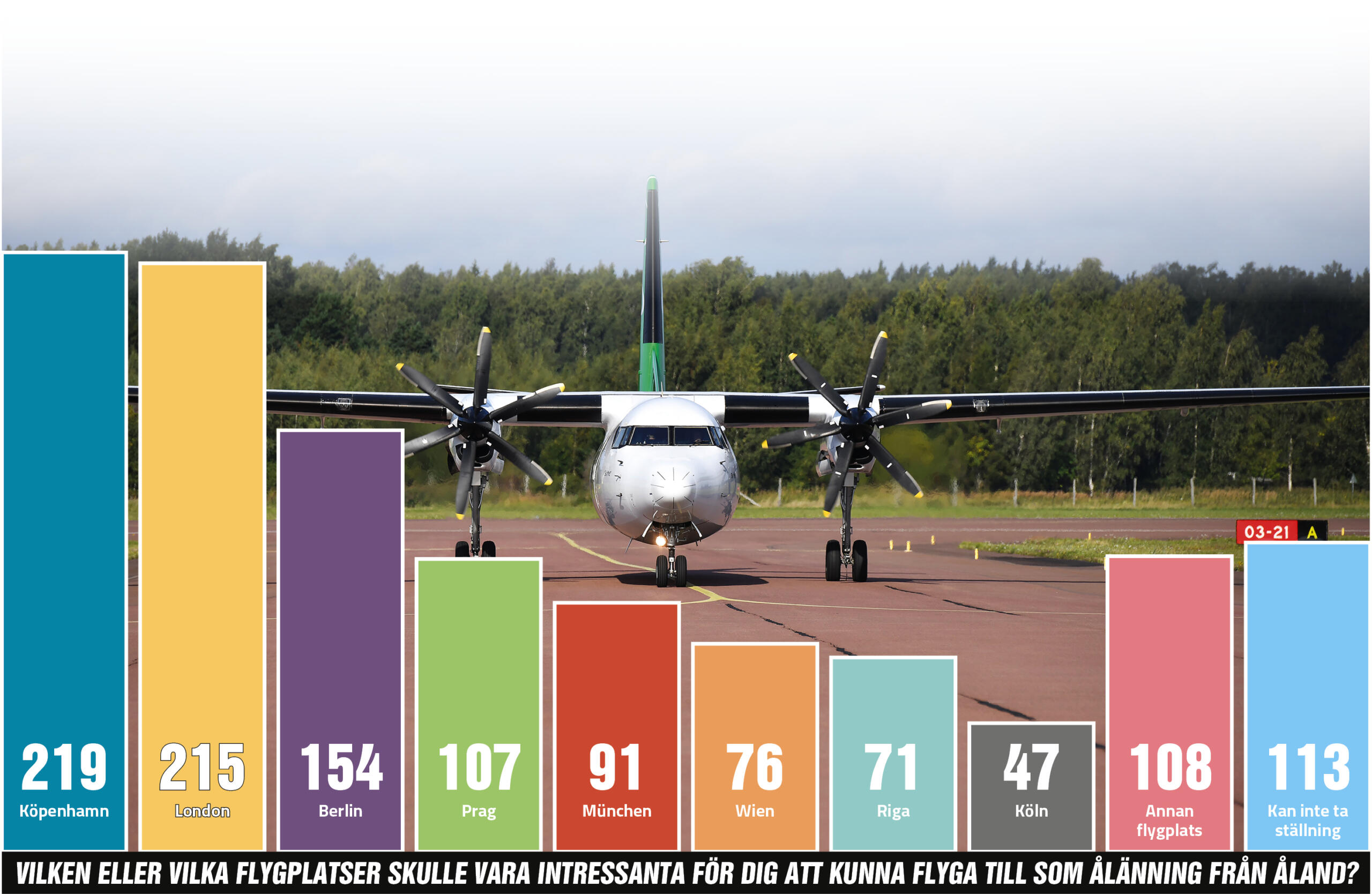 Köpenhamn och London. Det är de två orter som flest deltagare i Åland Gallup skulle vilja flyga till med direktflyg från Åland.