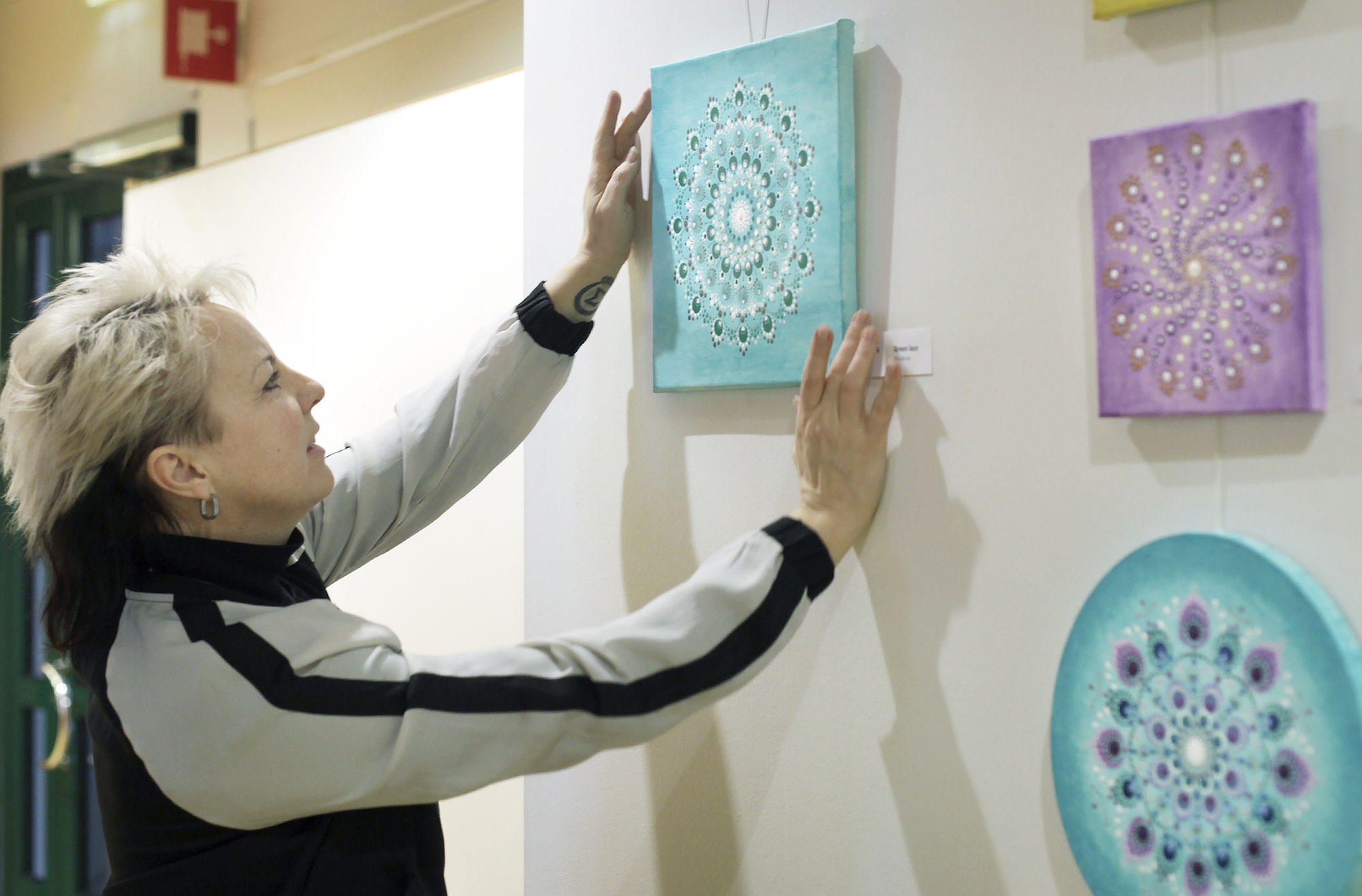Strikta mönster och lysande färger när Carola målar ”dot art”