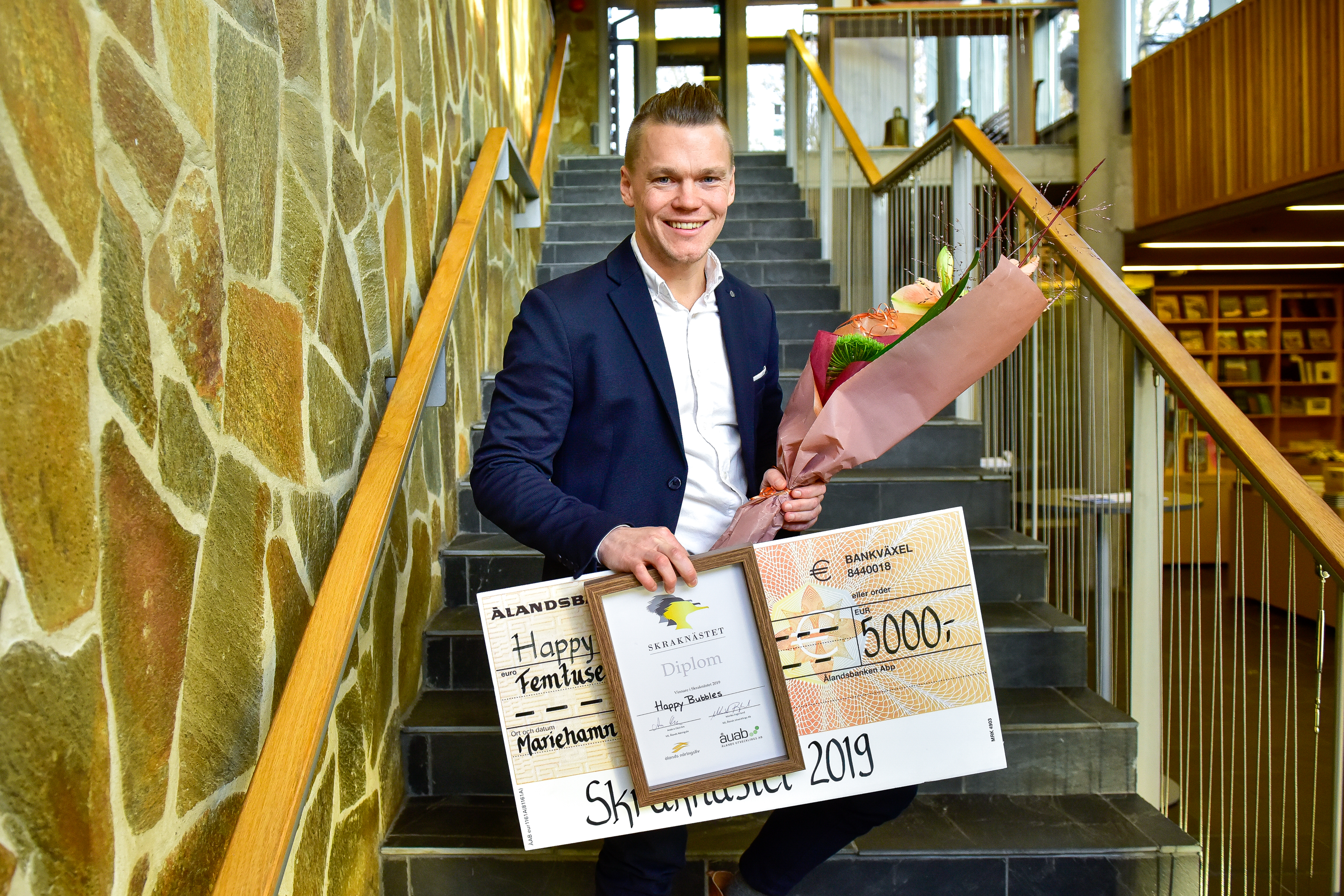 Mattias Andersson med sin affärsidé Happy Bubbles är årets vinnare av Skraknästet.