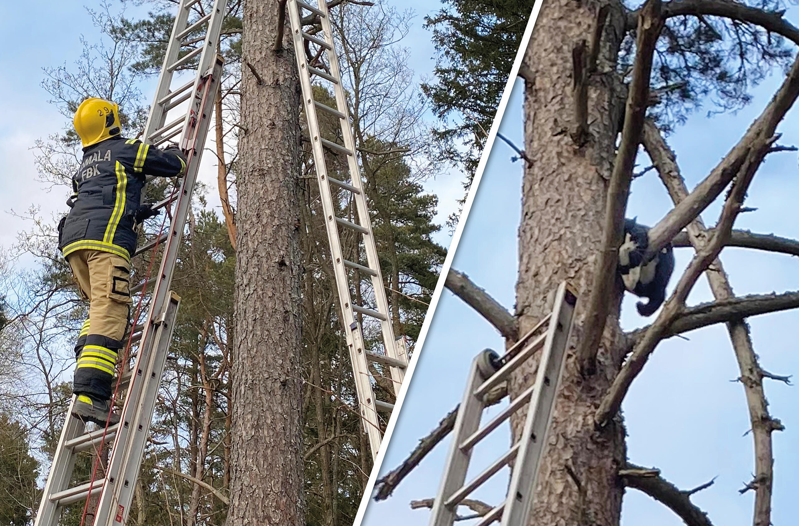 Katten Pandis fastnade i tall – räddades av brandkårister